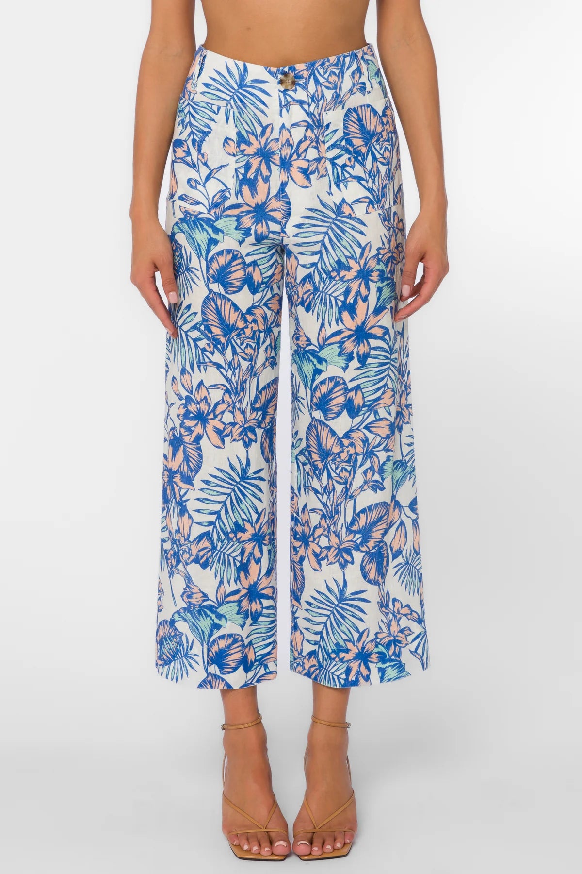 The Alyx pant, made from an airy linen blend fabric features a wide-leg silhouette for all body types. The button zip closure and front patch pockets add a touch of utility-chic style and the tropical print will take you all through Spring and Summer. Style with our Hayes Scoop Neck Top.