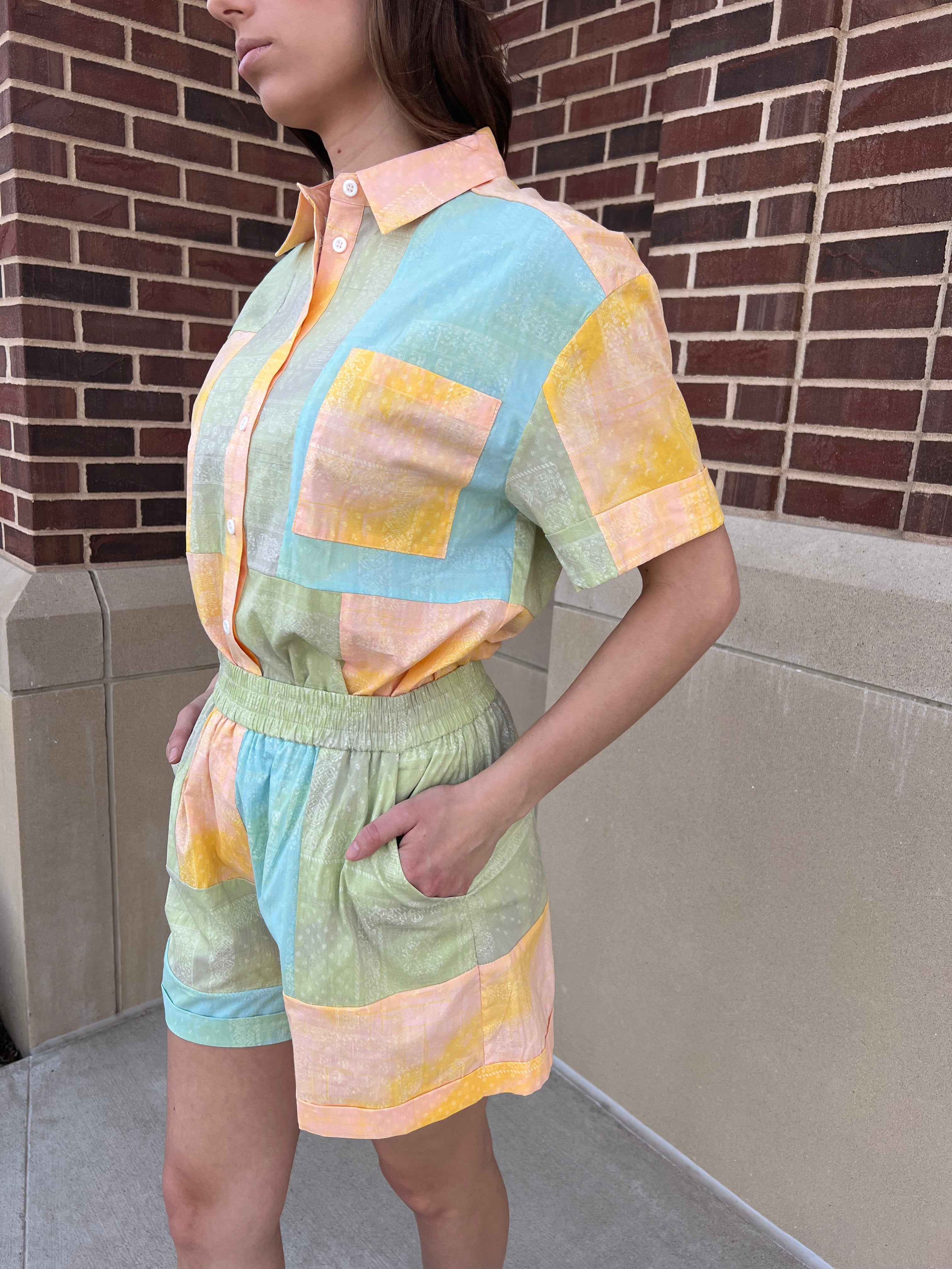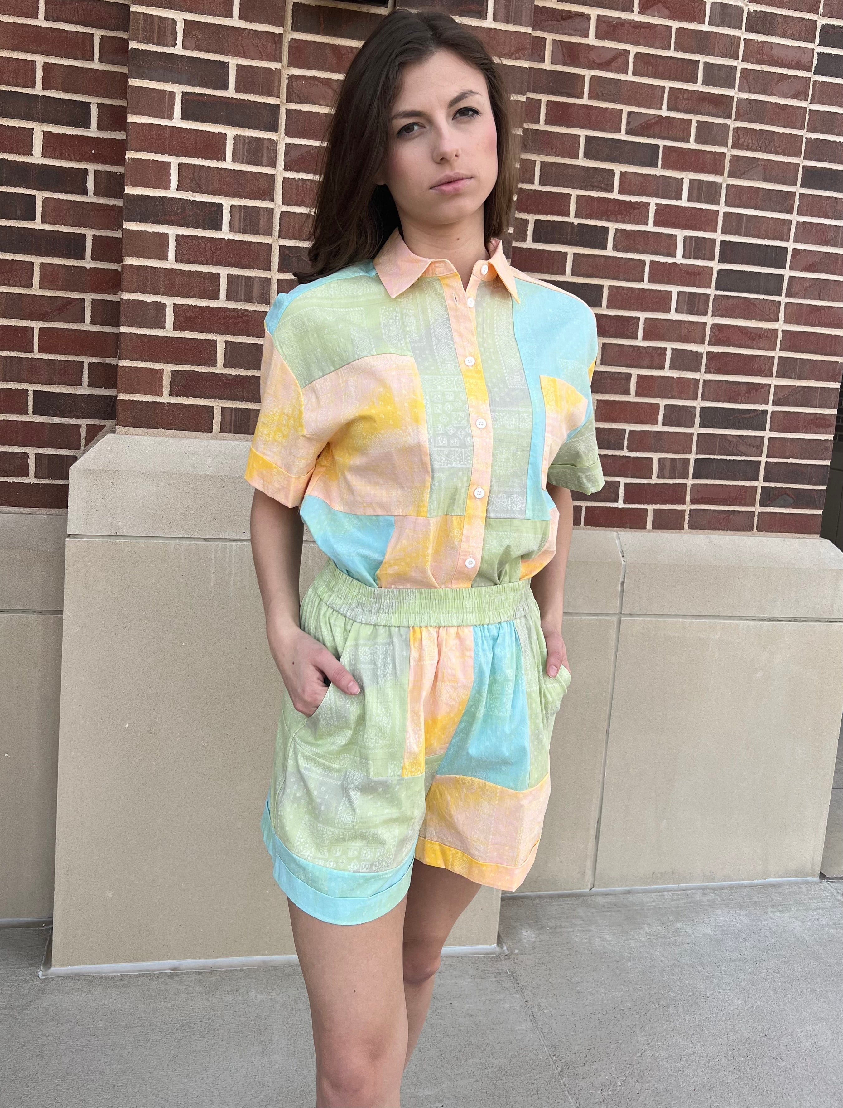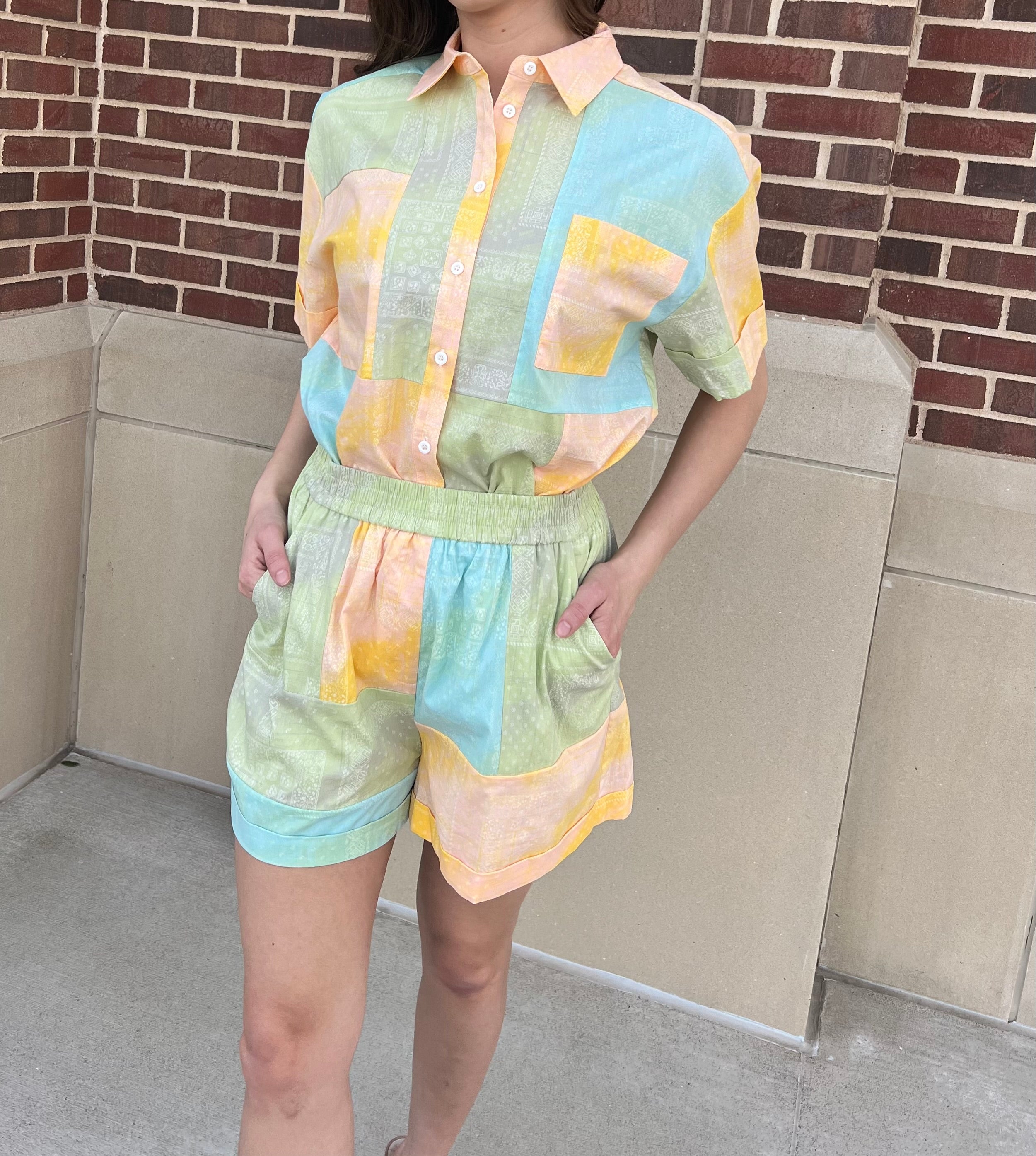 FRNCH is a contemporary, chic, Parisian line that embodies a collection of clean lines, refined fabrics and sophisticated details with a touch of vintage in a variety of timeless pieces. The print of these shorts are reminiscent of the classic bandana print. Pair the shorts with the matching Cara Patchwork Button Up Top for a cool statement look or a coordinating basic tee or tank for a more casual vibe.