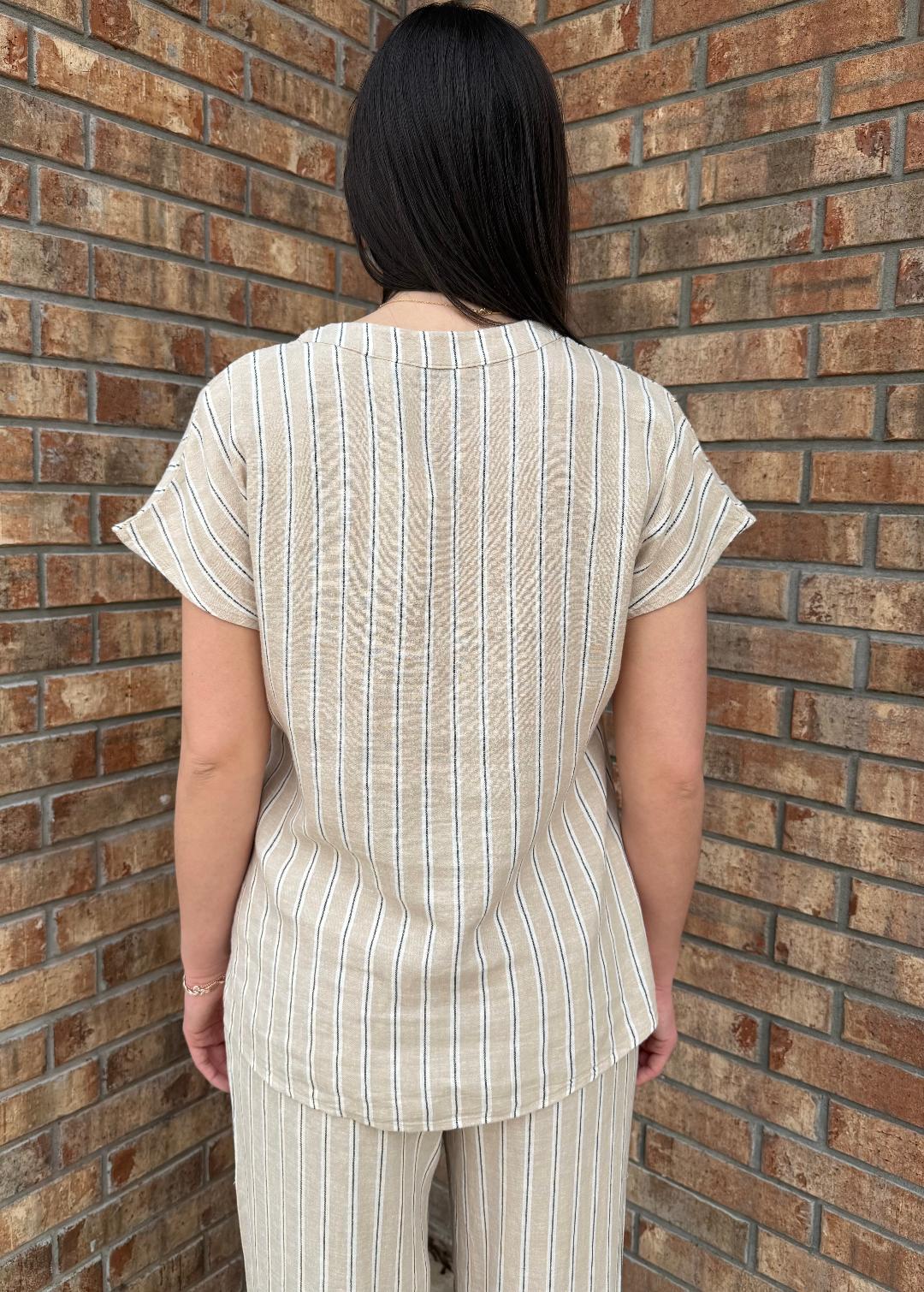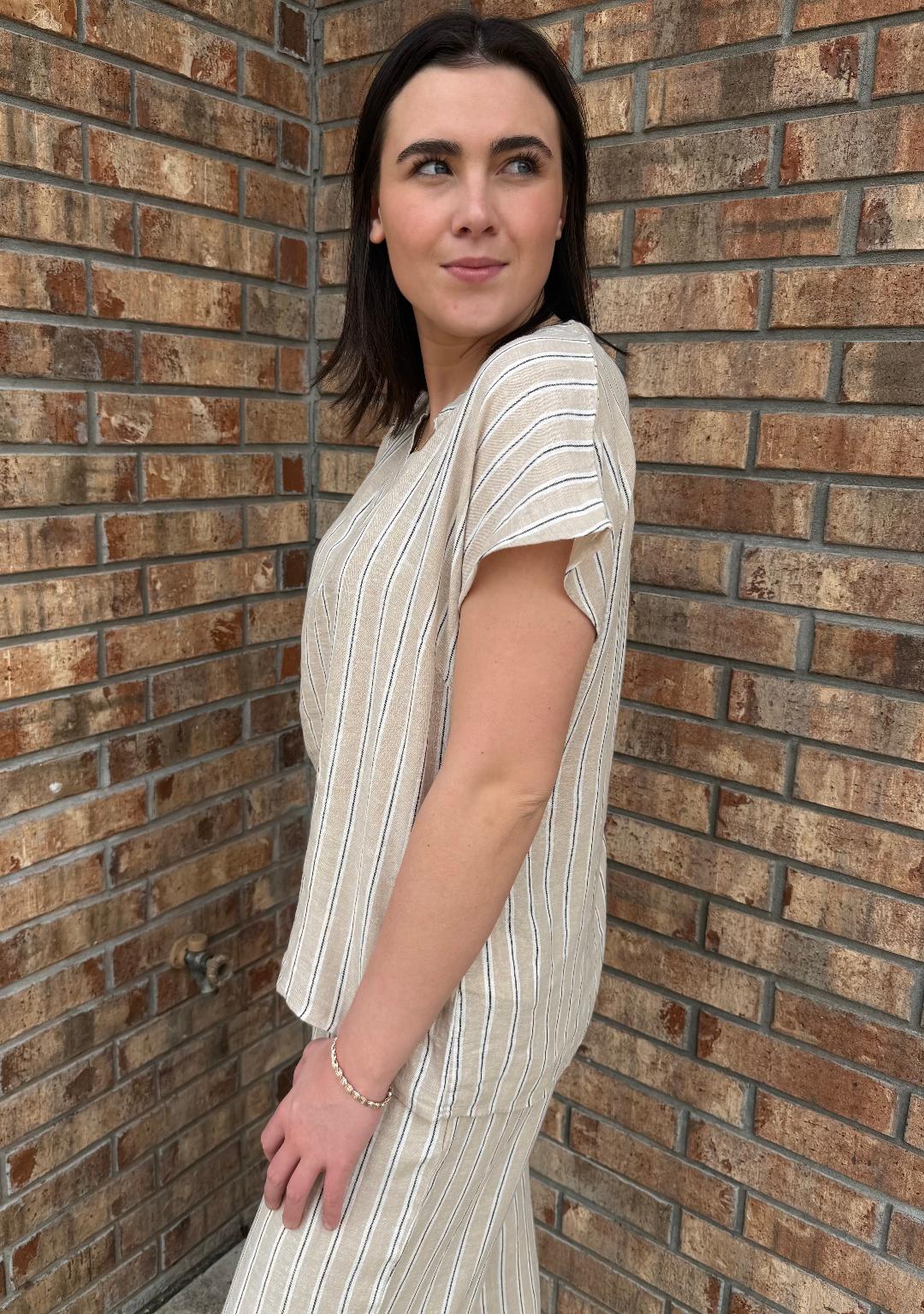 Sandstone Stripe V Neck Top