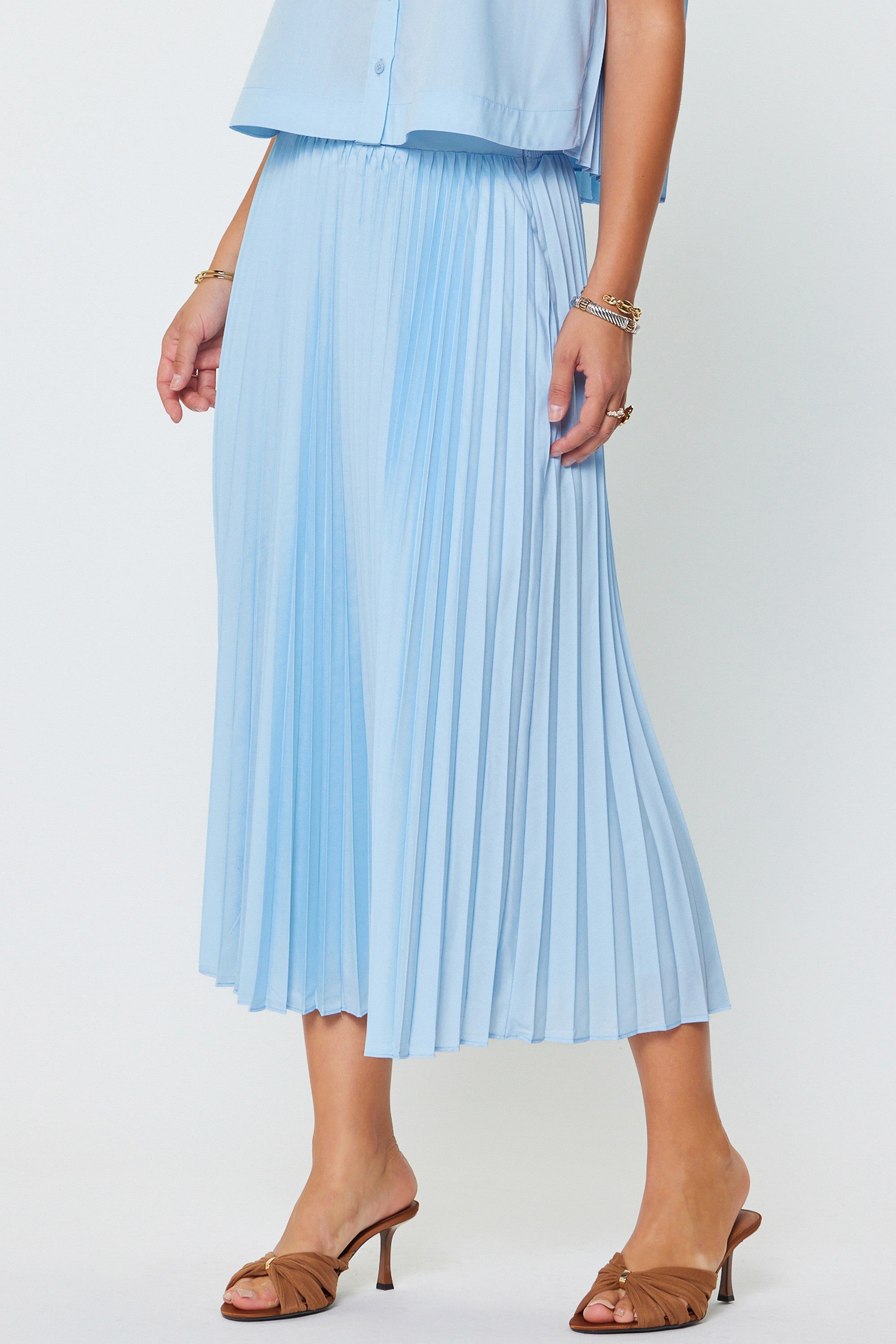 Baby Blue Pleated Midi Skirt