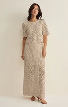 Cotton wrap skirt finished with crochet details for relaxed, warm-weather days. This 100% cotton skirt moves beautifully with every step, featuring a high-rise waist and wrap front with button closure. The intricate lace adds just the right amount of romance to your look. Style with its matching top or go for a simple white tank.