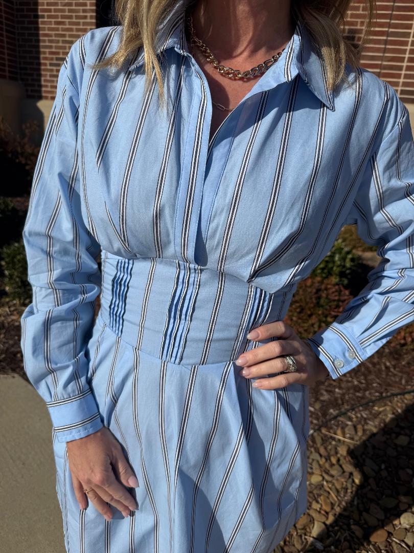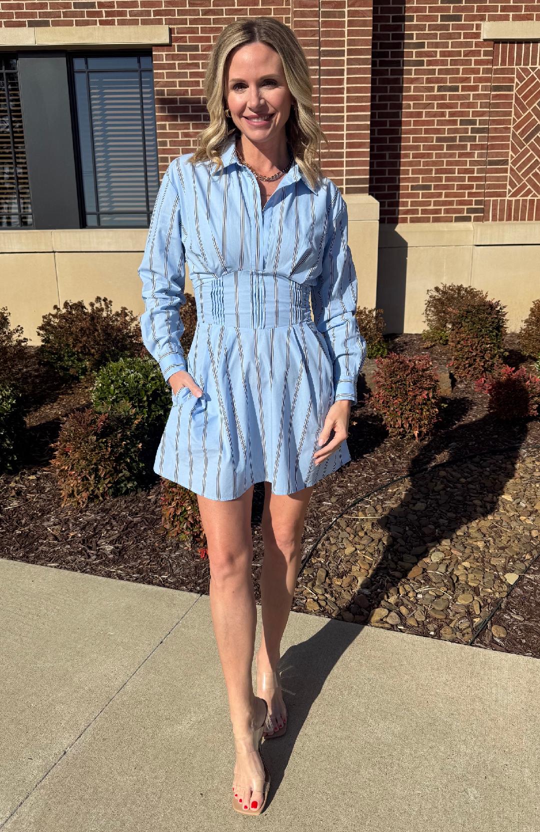 This dress combines timeless sophistication with everyday practicality. This long-sleeved design features a crisp collared neckline that elevates any occasion, while a cinched waist creates a flattering silhouette that defines your figure. Functional front pockets add utility without compromising style, making this piece equally suited for the office or weekend outings. The dress offers versatility that pairs effortlessly with your existing wardrobe, delivering a polished look that transcends seasons.