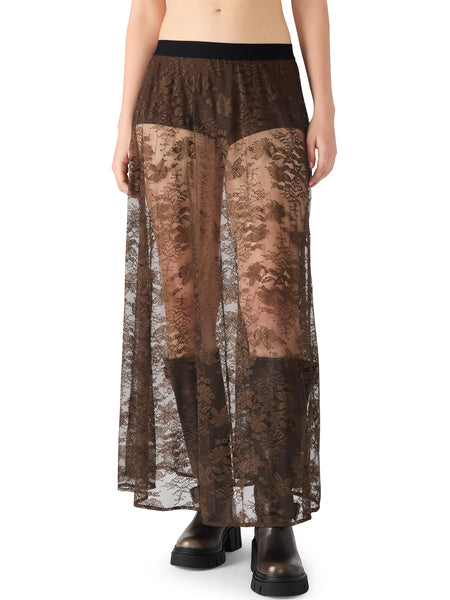 Elevate your wardrobe with the Gisela Skirt, a maxi-length sheer lace skirt that combines elegance with modern edge. Crafted from delicate lace, it offers a lightweight, breathable feel while showcasing intricate patterns that add texture and depth. Does not come with lined with shorts. See styling inspiration below in photos.