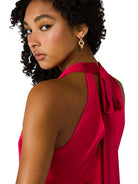 - Halter neckline with ties at back