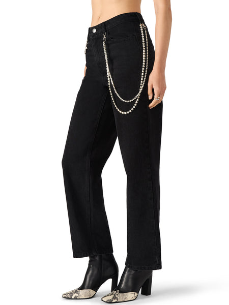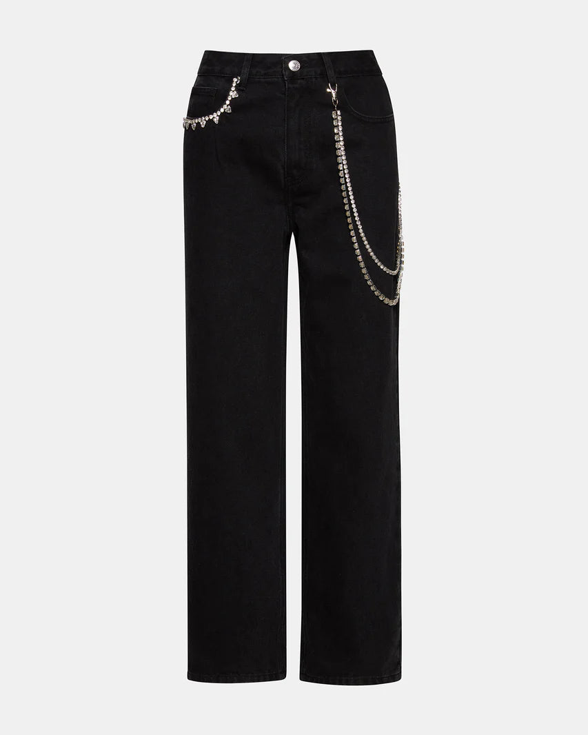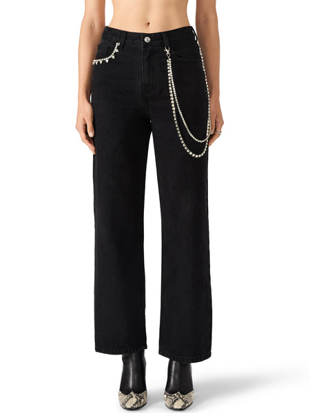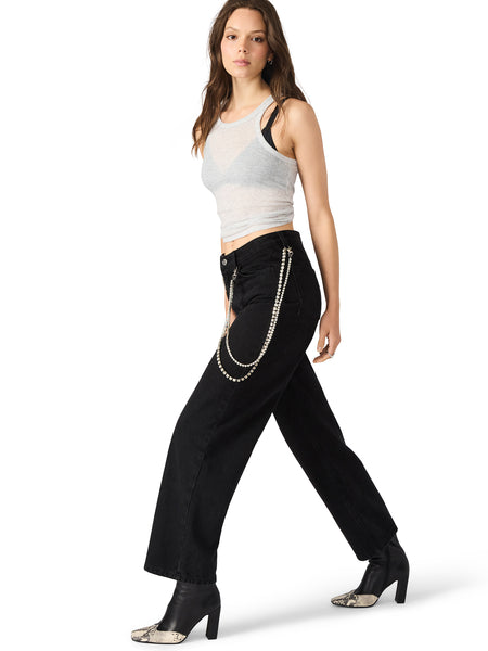 These wide-leg denim jeans combine style and practicality with functional front and back pockets for convenient storage. The attachable chain adds a versatile, edgy detail, allowing you to customize your look. Crafted for comfort and a relaxed fit, this jean is an expert choice for a modern, fashion-forward wardrobe.