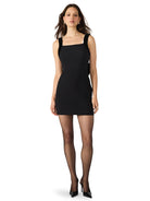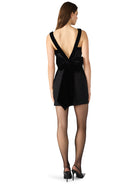 This little black dress delivers timeless sophistication with a statement twist. Designed with a sleek square neckline and wide velvet straps, it features a fitted silhouette that flatters the figure while maintaining a polished finish. The dramatic deep-V back is adorned with an oversized velvet bow for a touch of playful glamour, making it perfect for cocktail parties or holiday soirées. Finished with a hidden side zip closure for a smooth, tailored fit, this dress is an instant classic with modern allure.