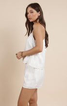 Effortlessly breezy with a touch of elegance, the Heritage Tank is a warm-weather must-have. Crafted from a silky soft, lightweight fabric, it features a flattering V neckline and a relaxed silhouette for all-day comfort. The scoop back with a delicate tie detail adds an unexpected twist, making it just as stunning coming or going. Pair with the matching Heritage Shorts for an effortless, elegant look or any of your favorite bottoms.