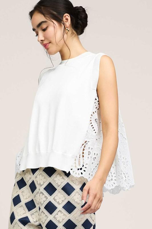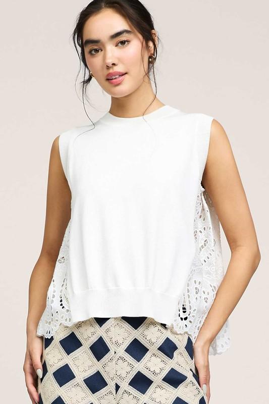 White Knit + Eyelet Top