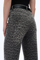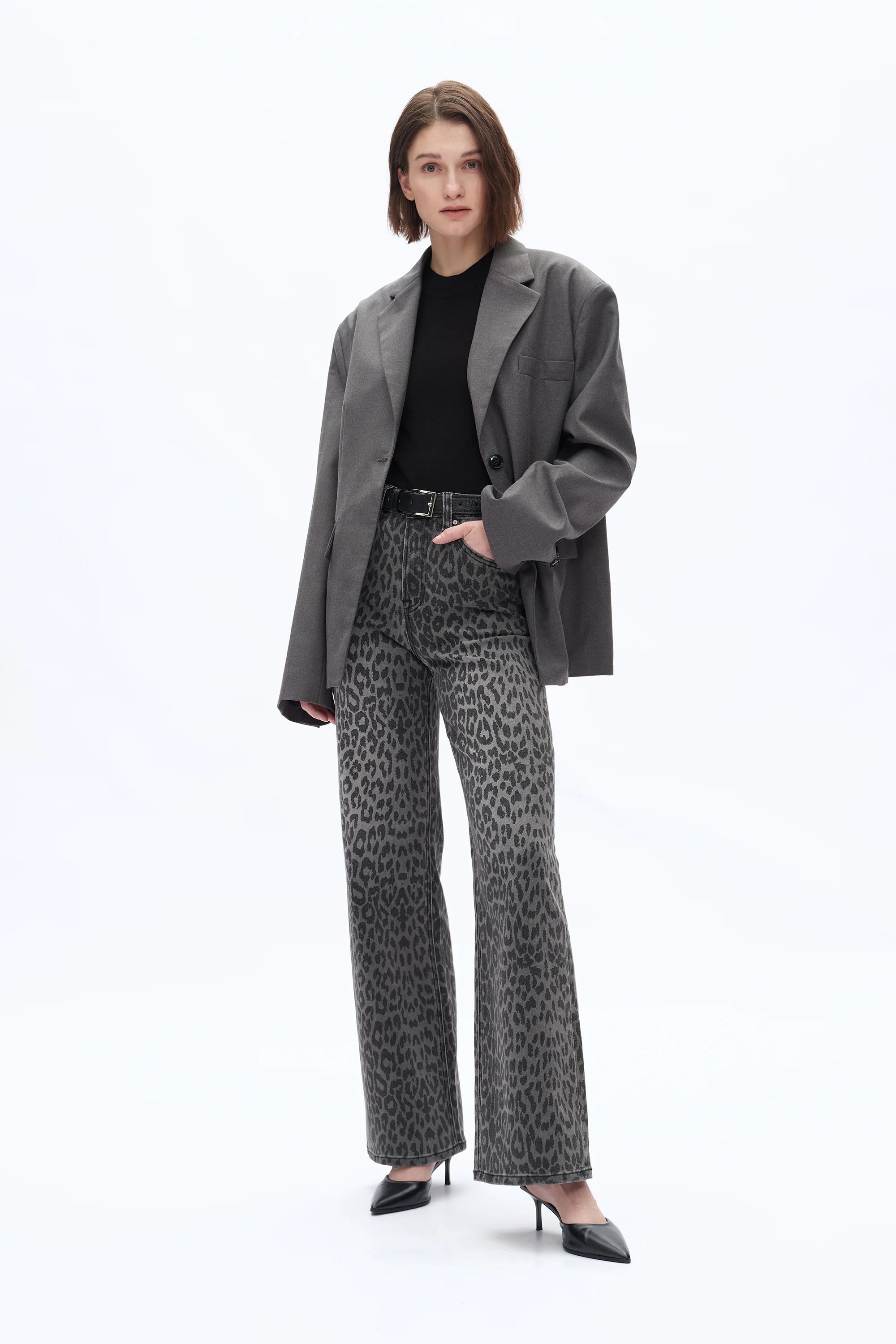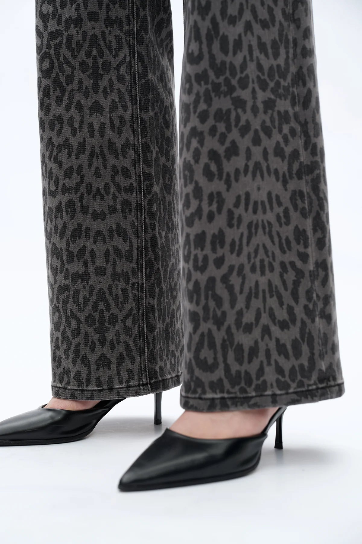 These Bayeas jeans are a bold twist on a classic silhouette. Made from a soft denim blend with comfortable stretch, they move with you while maintaining their structured shape. The high-rise waist flatters the figure, while the wide-leg cut gives them a modern, elongating effect that pairs effortlessly with heels, boots, or sneakers. The washed charcoal leopard print adds an edgy, elevated feel—subtle enough for everyday wear but statement-making in style. Finished with classic five-pocket styling and a zip-fly button closure, they’re the perfect combination of comfort, confidence, and cool-girl attitude. Dress them up with a blazer and pumps or go casual with a fitted tee and sneakers—these jeans bring versatility and personality to any look.