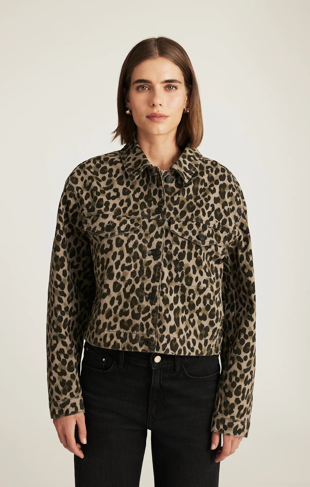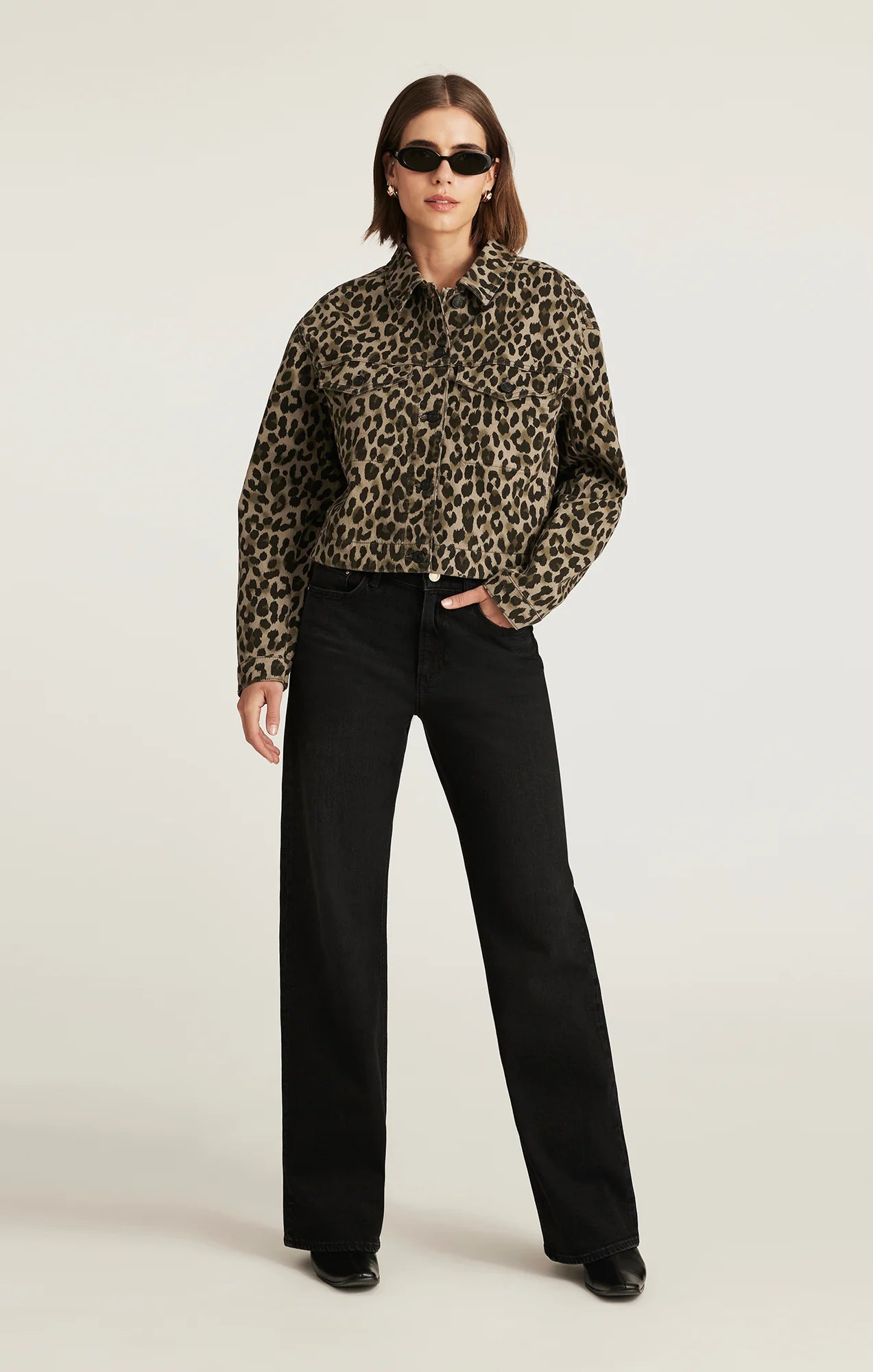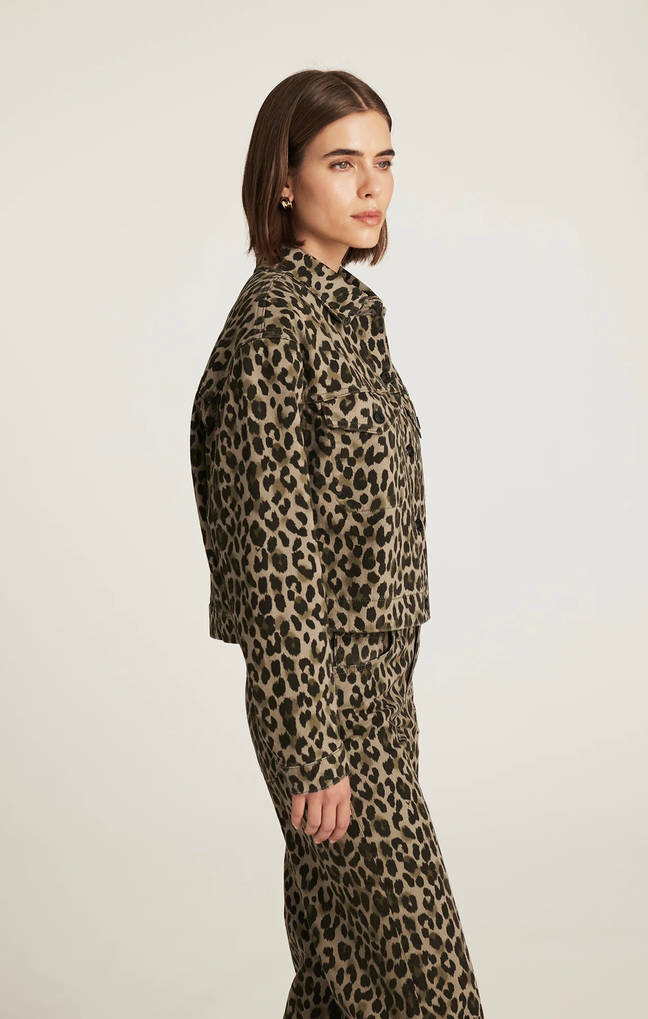Maren is a timeless denim jacket with a boxy fit, cropped banded hem, and dropped shoulders, making it an effortlessly relaxed layer. This style is finished in a muted green leopard print. Featuring minimal stretch and an easy-wearing mid weight, Mavi's Denim fabric has the look and feel of a timeless original you can count on wear after wear. Get the matching wide leg denim HERE.