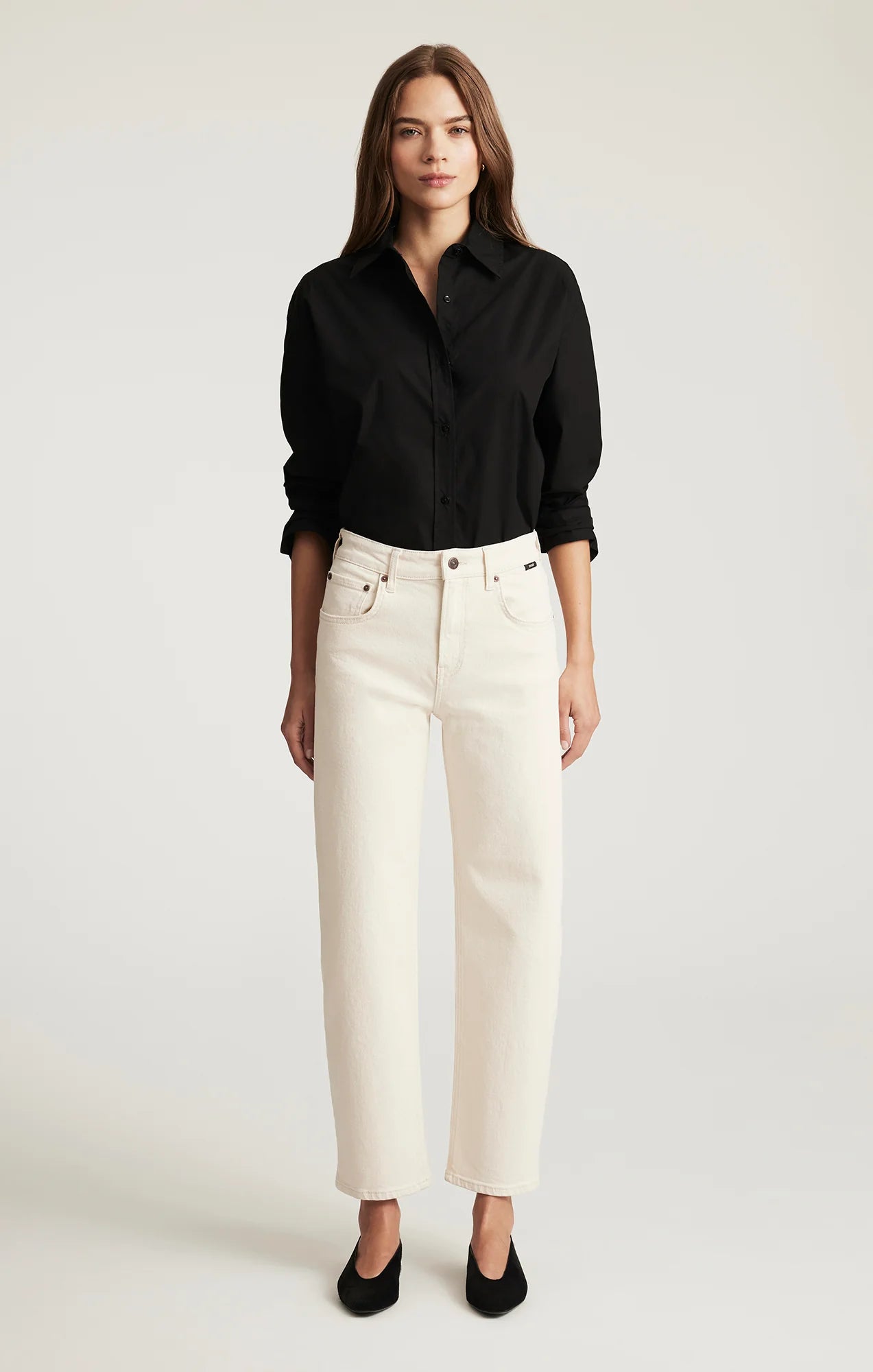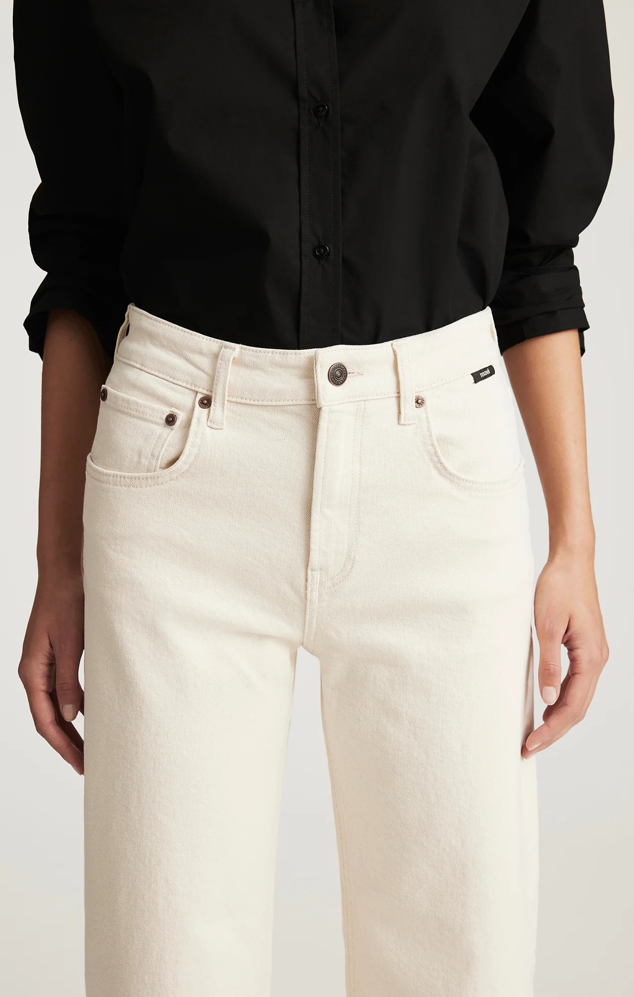 Nica features an easy barrel leg with subtle curves and a waist-defining high rise. It fits wider through the thigh and tapers toward the ankle for a flattering, laid-back look. This pair comes in a neutral beige hue. Designed with the look and feel of vintage denim, Classic Blue is a timeless fabrication. Made with Tencel™, cotton and elastane, it has a classic denim structure, with a soft hand feel and a hint of stretch.