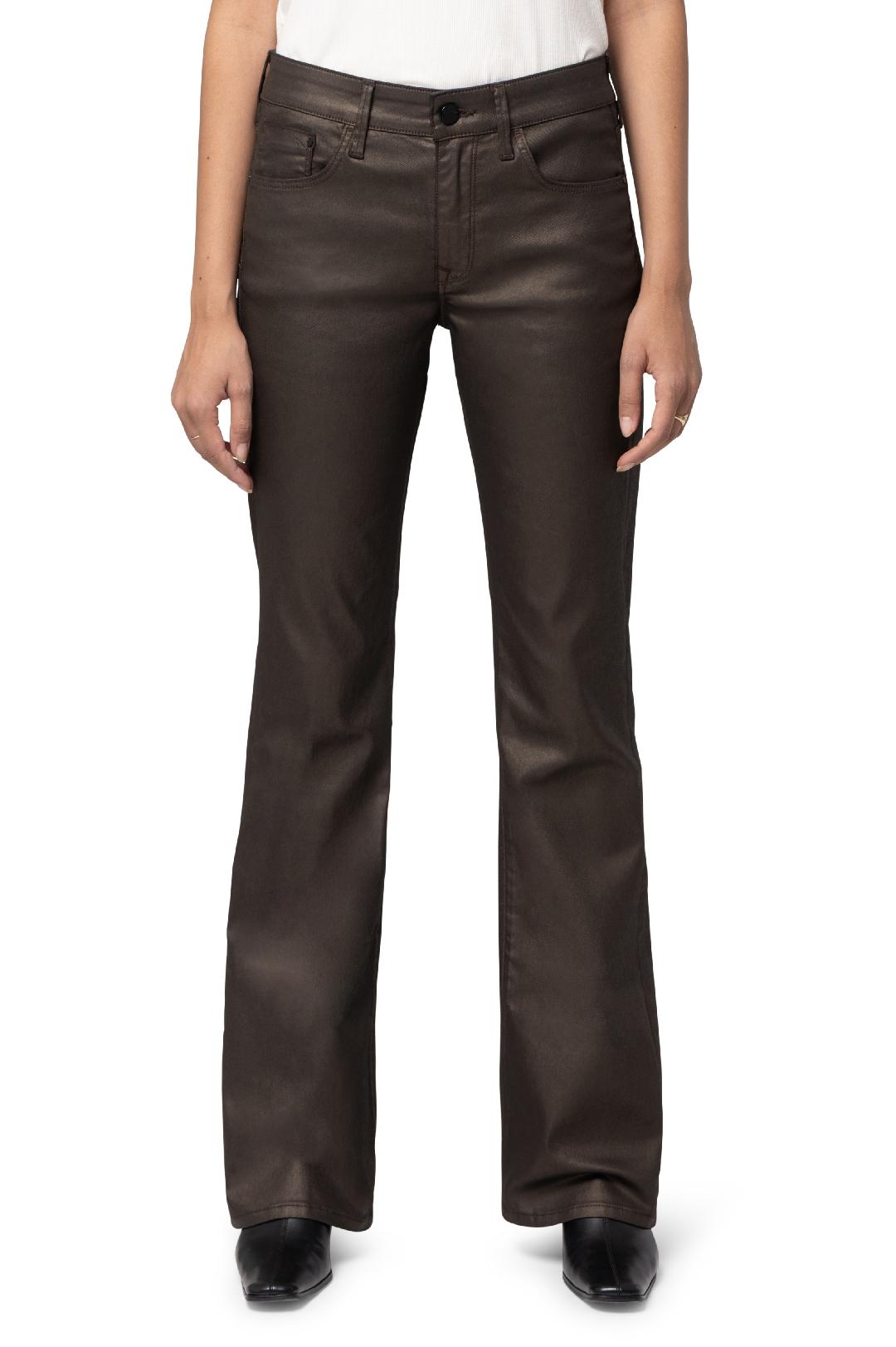 Vicky offers a more pronounced bootcut with a leg-lengthening flare. The flattering fit and easy mid rise provide a perfect balance between style and comfort. This pair features a coated bronze finish and comfort stretch. These bronze-coated bootcut jeans deliver a sleek, elevated twist on a classic silhouette. Crafted from soft, high-stretch denim with a lustrous bronze coating, they offer the perfect balance of comfort and edge. The mid-rise fit hugs the hips and thighs before subtly flaring at the hem for a leg-lengthening effect. Finished with five-pocket styling and a zip fly with button closure, these jeans add instant polish—whether paired with a silky blouse and heels for night or a chunky knit and boots for an effortless day-to-evening look.