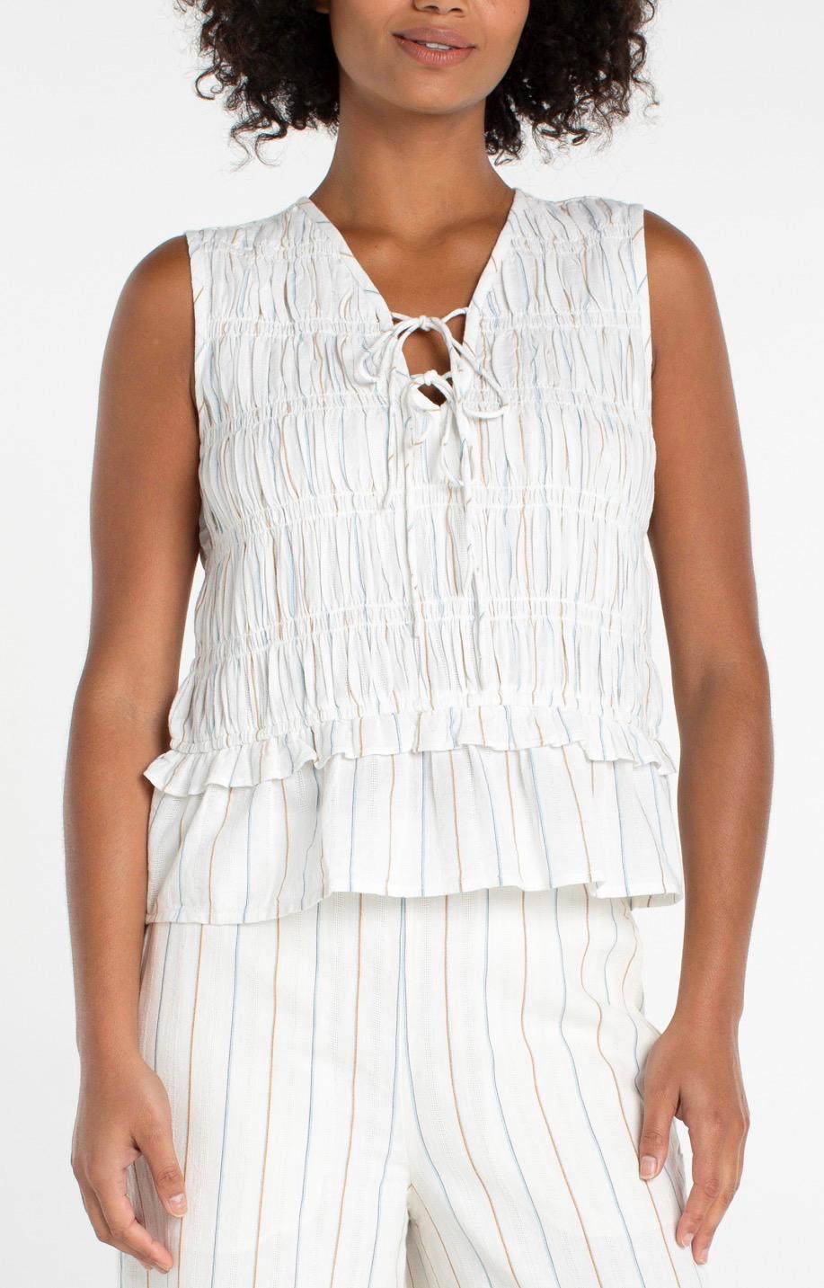 Liverpool Tie Front Smocked Sleeveless Top