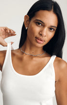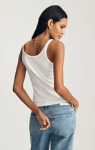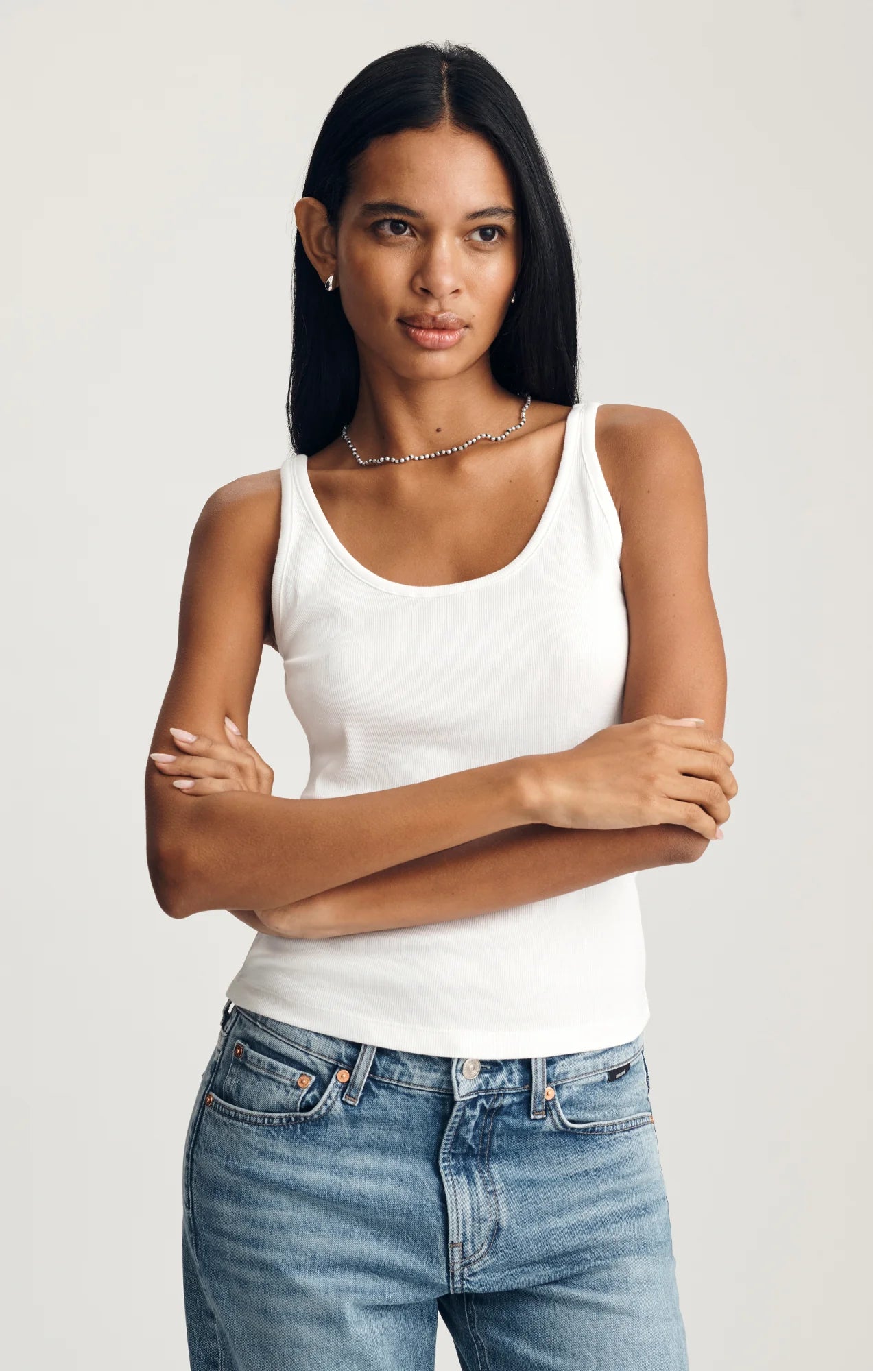 Your favorite scoop neck tank, refreshed with thin straps and a ribbed knit texture. The fitted but stretchy silhouette pairs perfectly with denim or layers under a button-up for casual summer style. A closet essential!