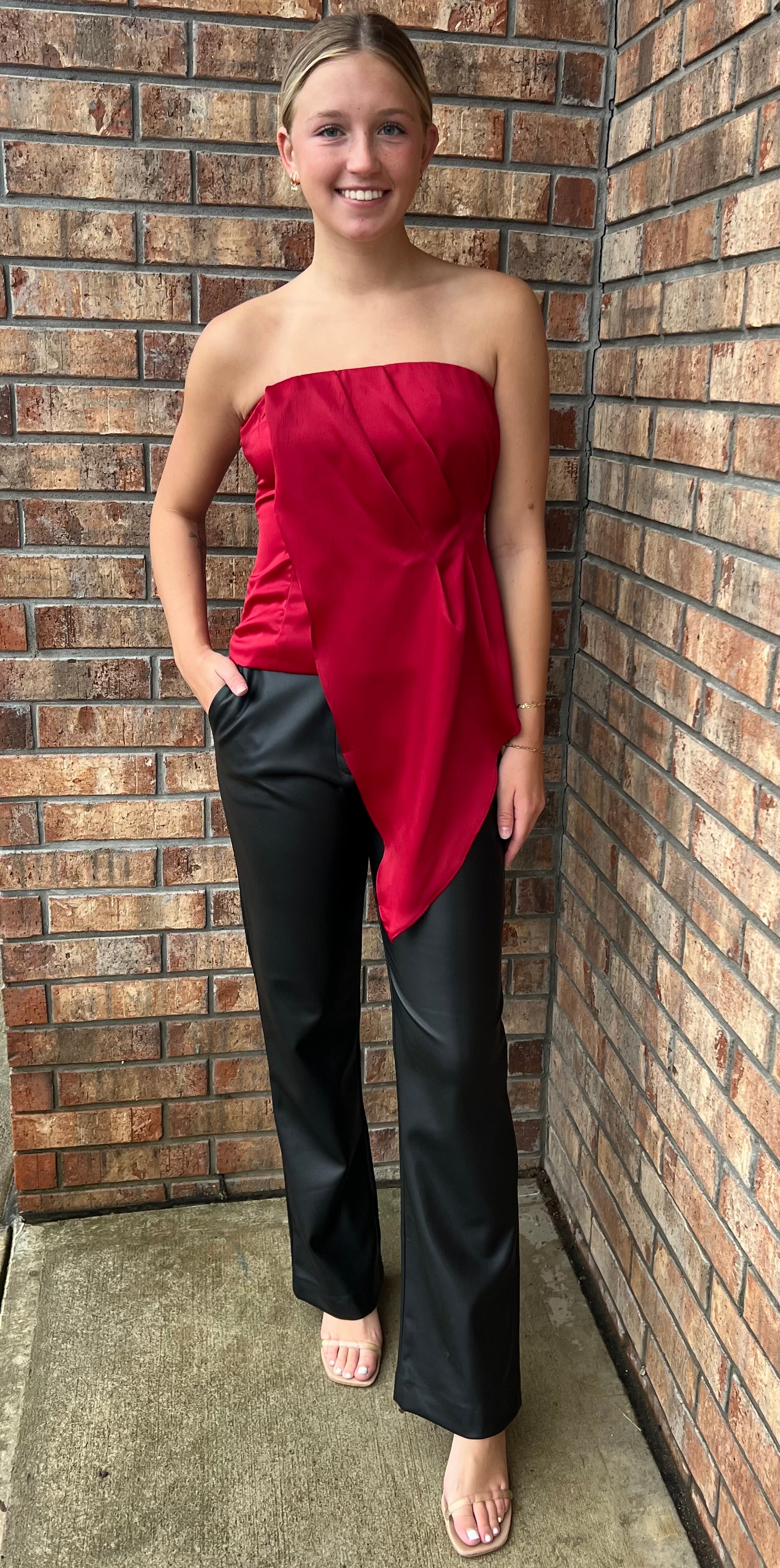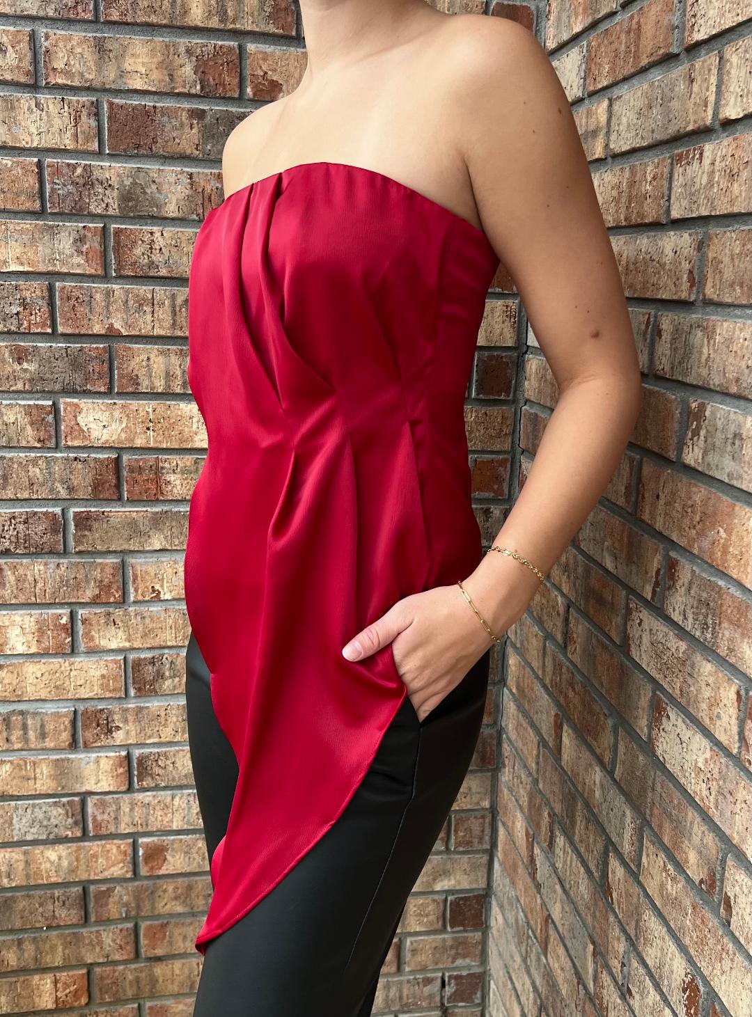 Red Asymmetrical Sleeveless Top