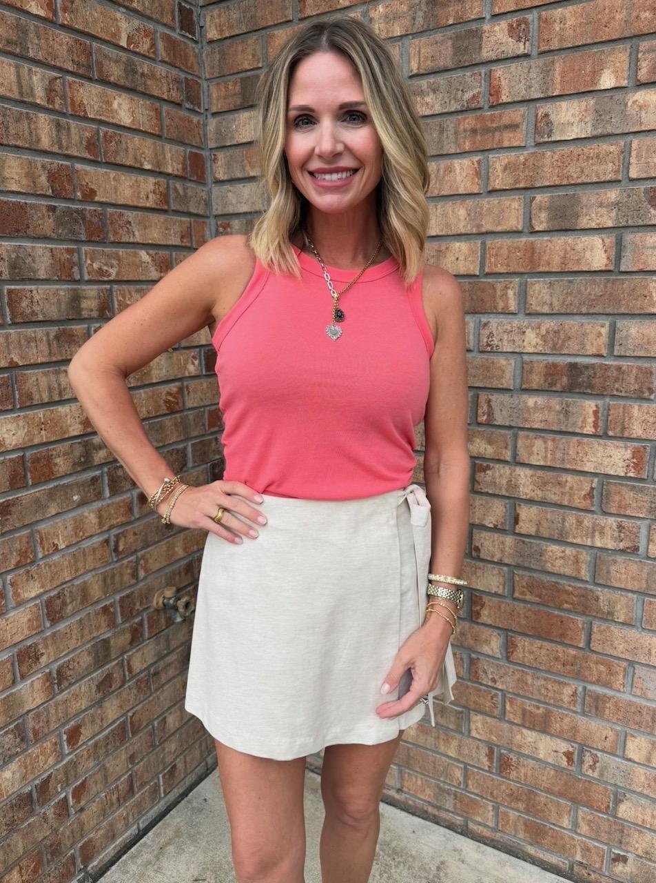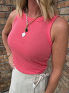 Laid-back and made for easy days, this relaxed tank is crafted from breathable loose knit jersey. With a classic crew neckline, bra-friendly wide straps, and a tuckable fit, it’s the kind of essential you’ll reach for on repeat.