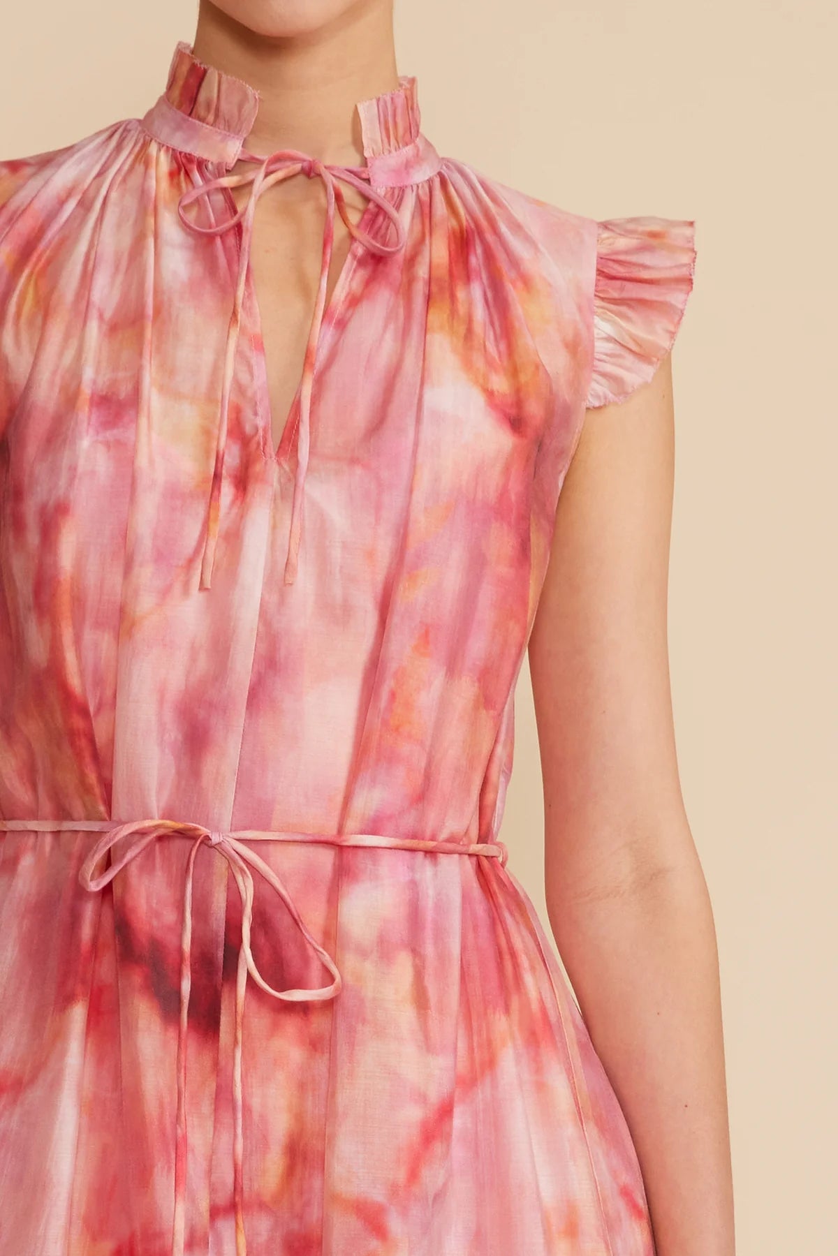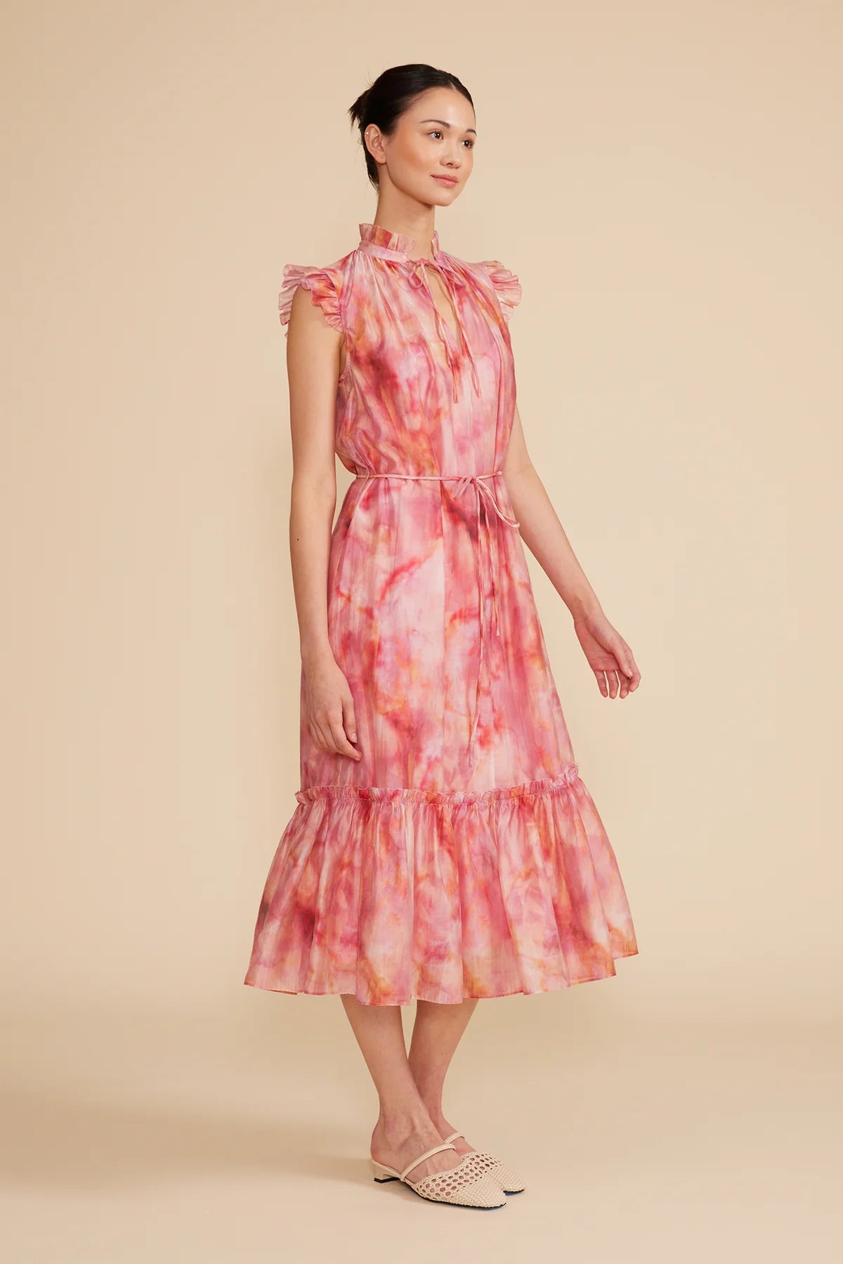 A show-stopping marble dyed dress in rich shades of pink. A silhouette any age can appreciate - midi length, flutter sleeves and a belt to accentuate your waistline if preferred. A dress suitable for work, church, weddings, dinner parties or vacation!