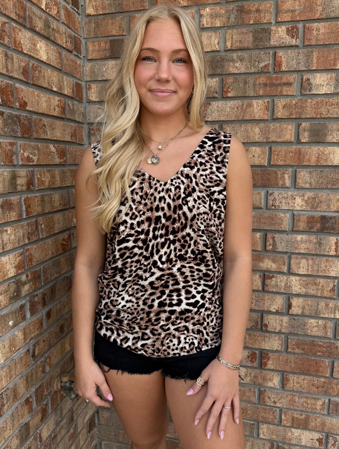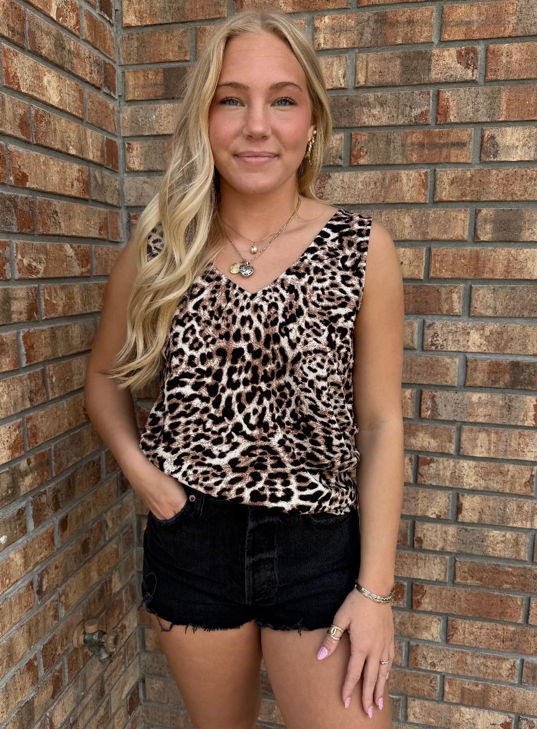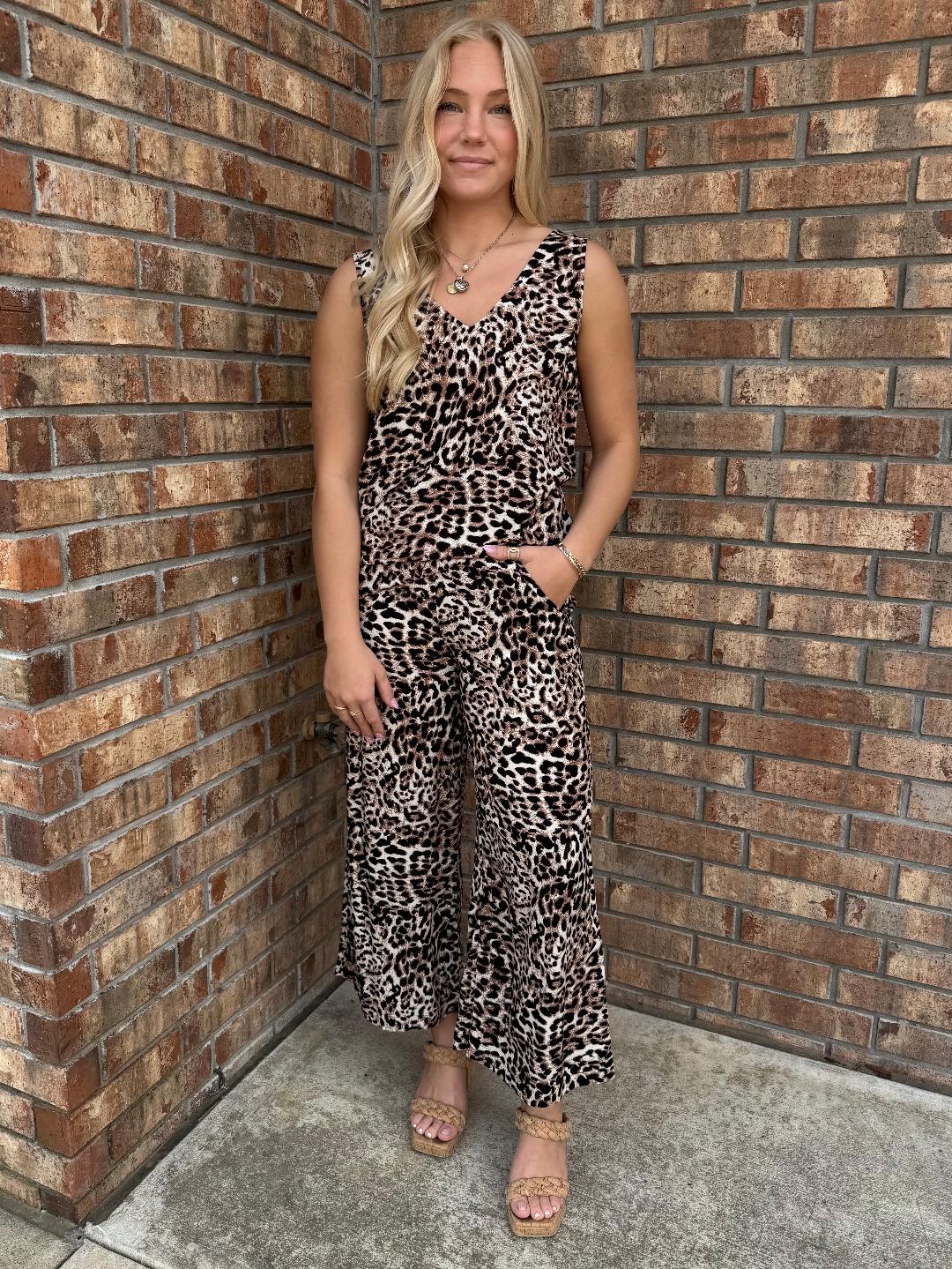 An easy-breezy, relaxed, bra-friendly leopard tank. Style back to its matching Joella Leopard Culotte Pant or your favorite denim.