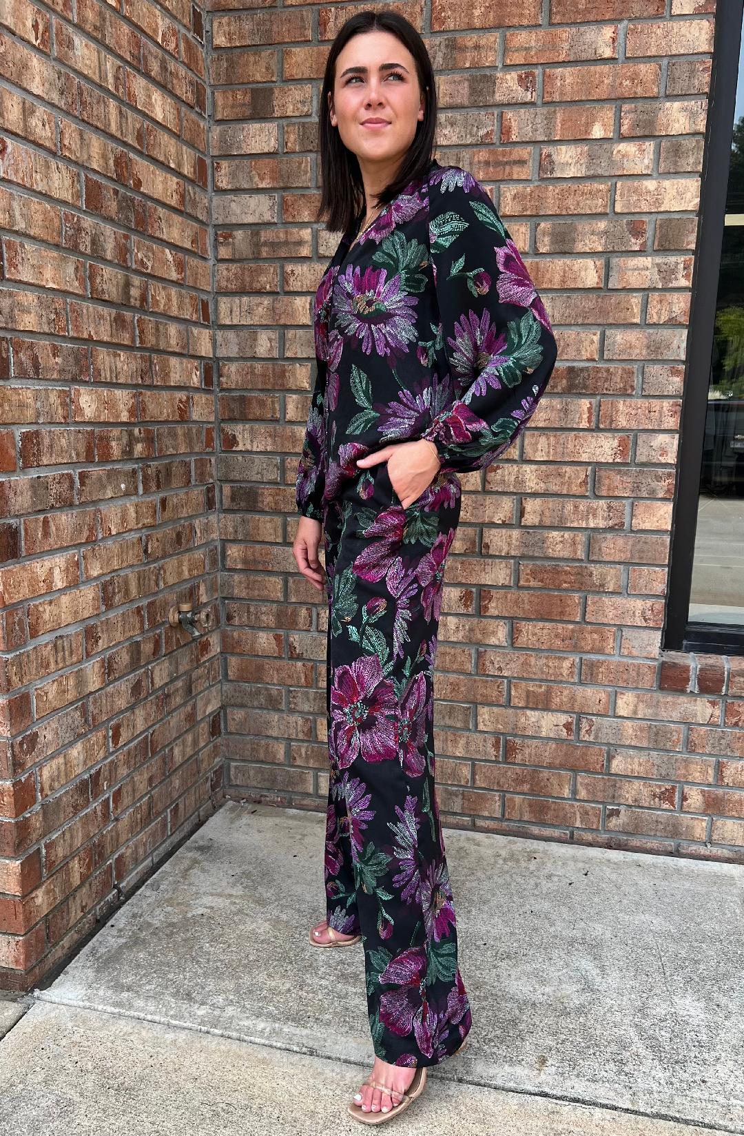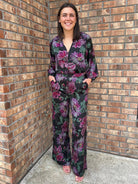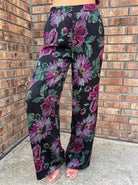 You will love the feel of this silky smooth fabric and the vivid floral pattern pops up against a black background. Choose a solid coordinating knit top or if you love a chic matching set, be sure to get our Randa Midnight Blooms Blouse.