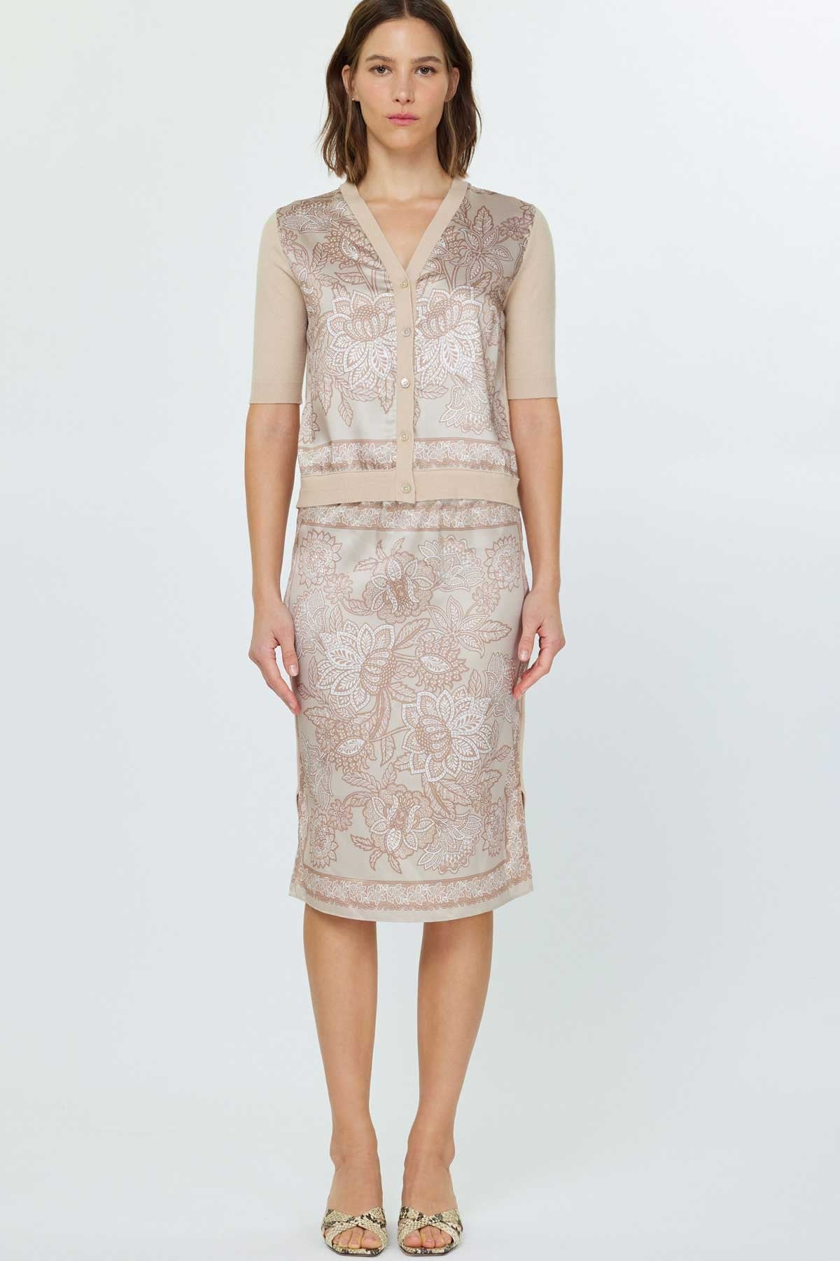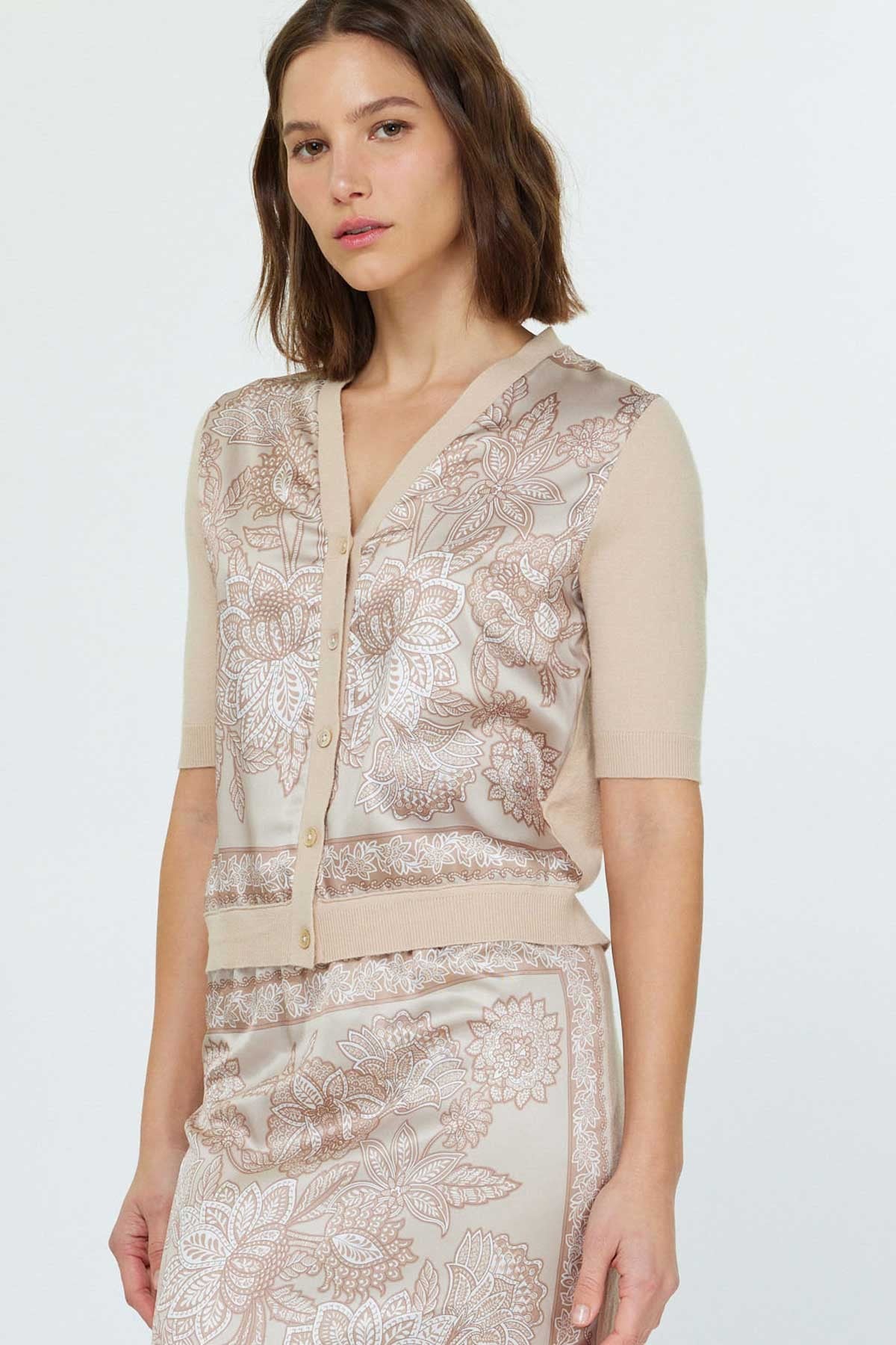 Silky smooth front, soft, light weight sweater knit back. We love this cardigan styled buttoned up as a top with white jeans or unbuttoned over a cami with a trouser. For a chic set, get the matching Mixed Media Floral Paisley Skirt. Who said your professional wear had to be boring?! Love this look for work and beyond!