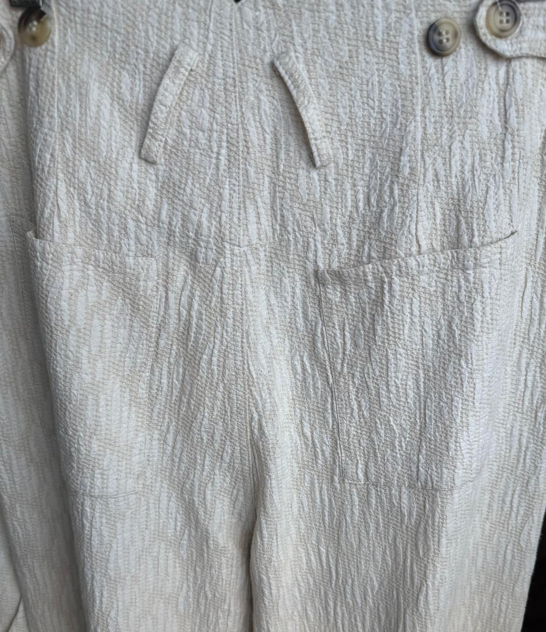 FRNCH never disappoints when it comes to detail. These straight leg pants are crafted in a cotton/linen/viscose blend with embroidered stitching throughout, giving a unique texture. Polished off with front pleats and adjustable button tabs on the side of the waistline for a great fit.
