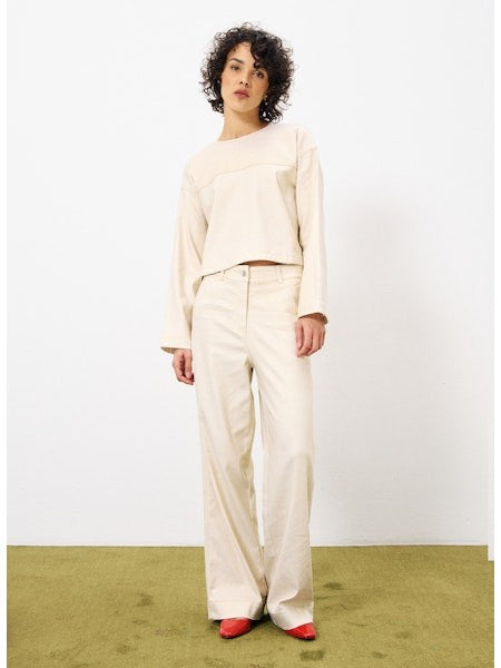 Add a little shimmer to your wardrobe with these champagne coated trousers. Complete with a wide leg, front and back pockets these pants have amazing stretch so you'll be comfortable while looking polished. We love these neutral pants with just about any top, especially its matching Winter Woven Champagne Top.