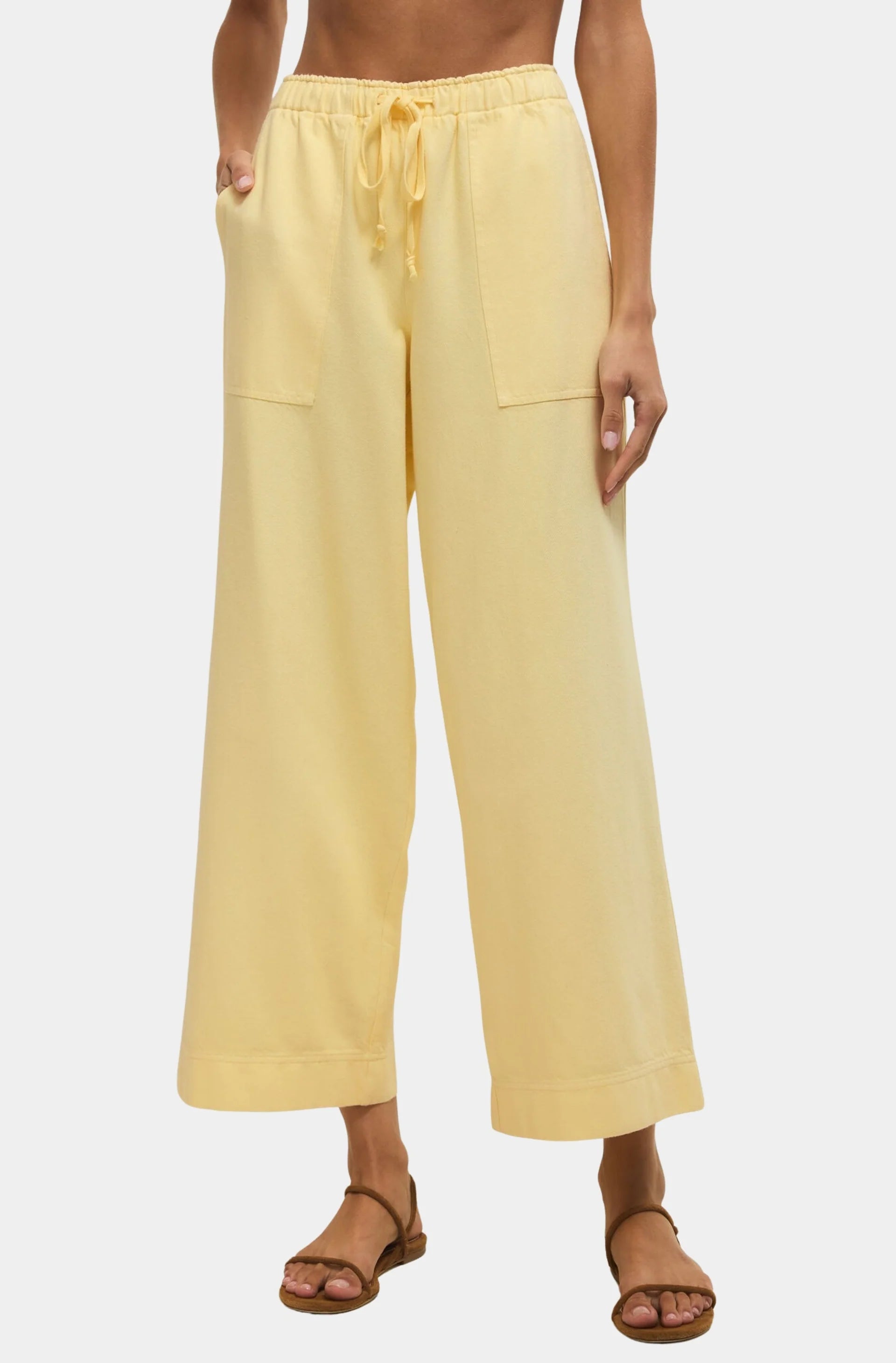 Crafted from a breezy twill fabric, this pant combines an ankle length, wide leg fit with an easy elastic waistband for all-day comfort. The smooth texture make it a travel-ready favorite. Get the matching top for a head to toe look or style back to your favorite tee!