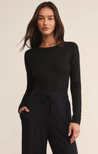 This crew neck top is made from Z Supply's signature Second Skin Baby Rib with a touch of stretch for a flawless fit. It can be worn tucked or untucked and is easily layered over, making it a year-round go-to.