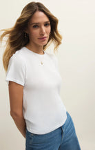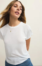 Soft and airy with just enough texture, this short sleeve crew neck tee is made from loose knit jersey for that effortlessly relaxed feel. The ladder stitch detail adds a touch of something special to your everyday rotation. Perfect alone or layered.