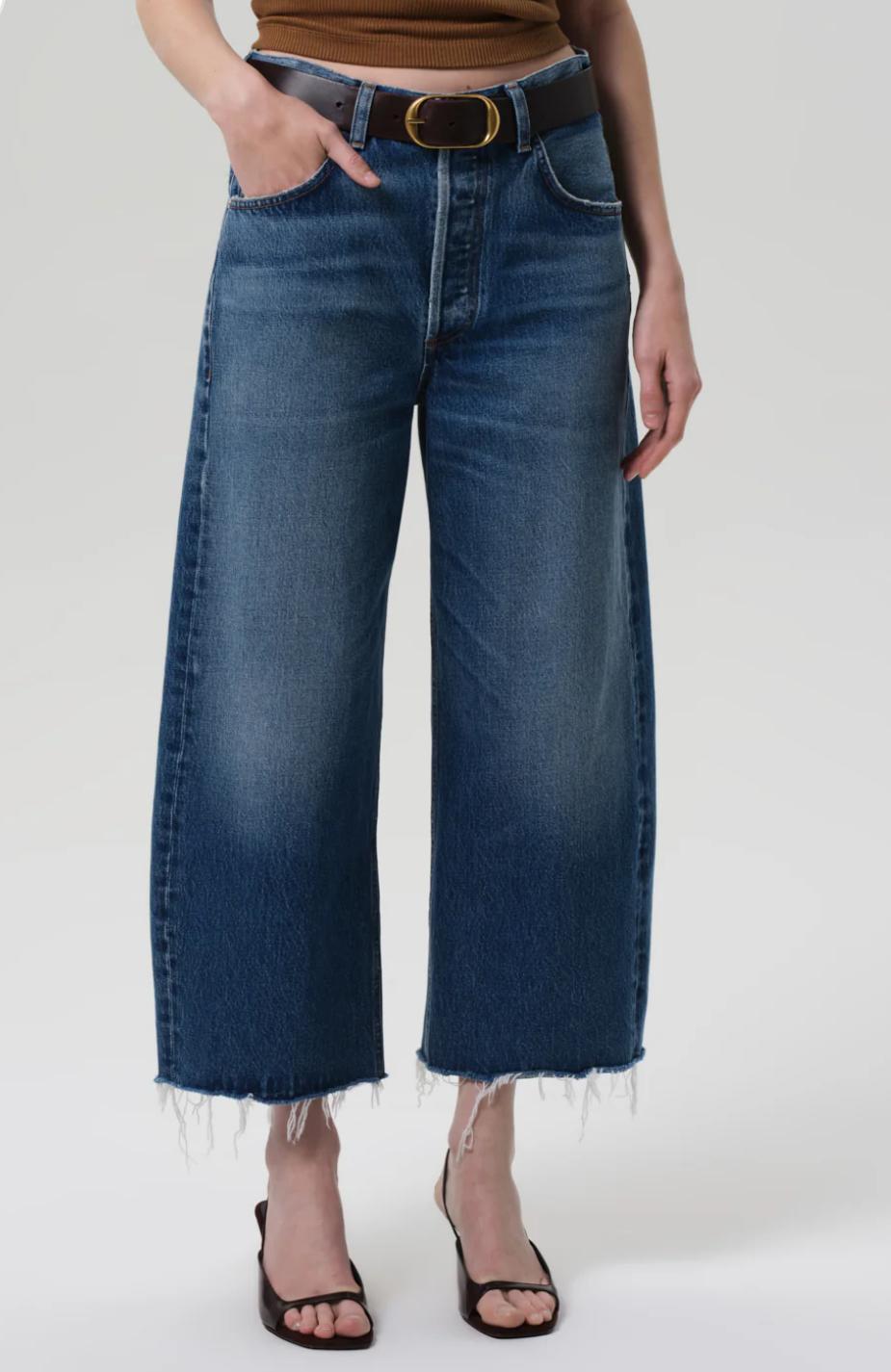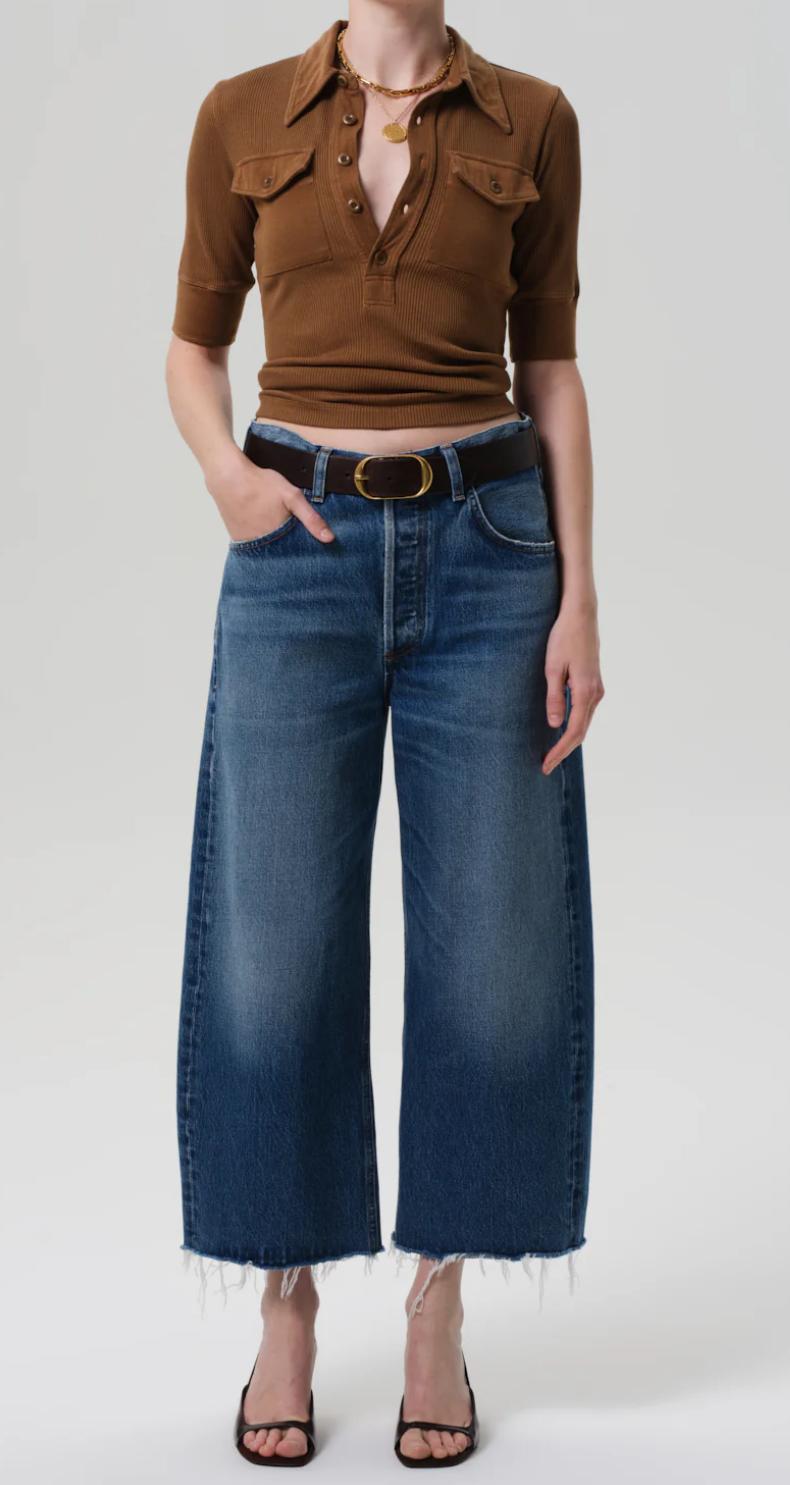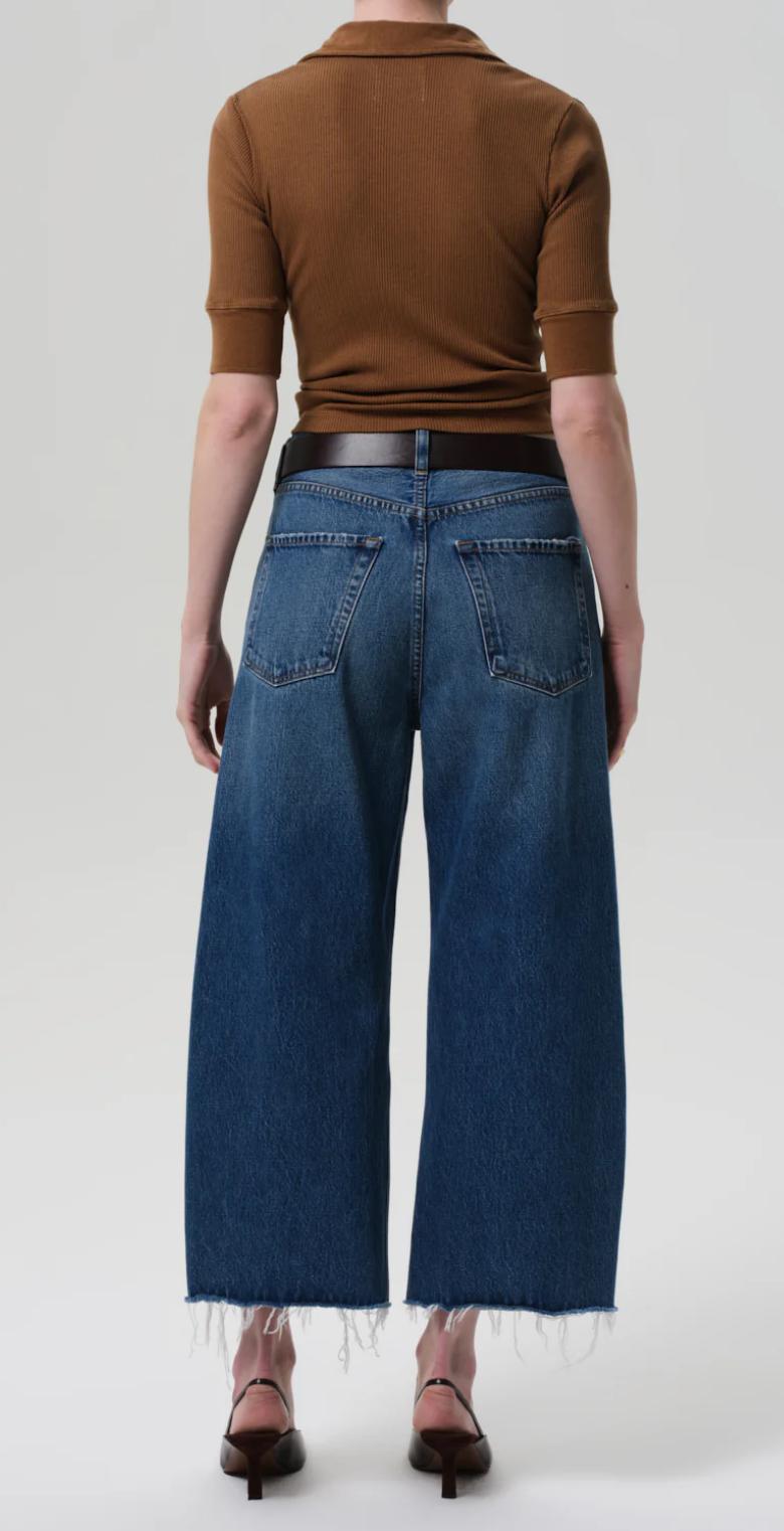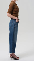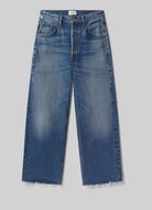 The ‘Ayla’ offers a refined take on the baggy silhouette with a relaxed fit that sits away from the body while maintaining a clean, intentional shape. The ‘Chaya’ wash is a softly faded medium-light indigo with marbling, whiskering, and a raw hem that lends a casual edge to the cropped length. Crafted from rigid regenerative cotton with a soft hand, it styles effortlessly with everything from crisp shirting to slim knits.