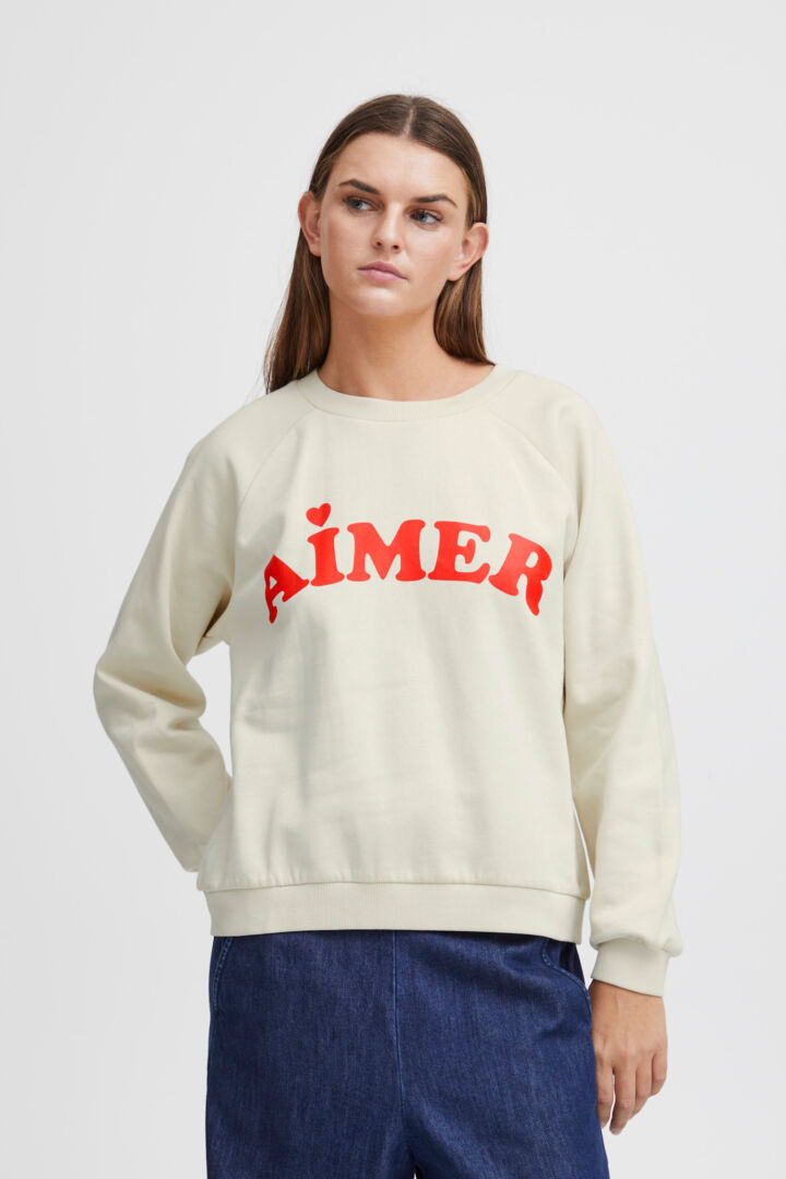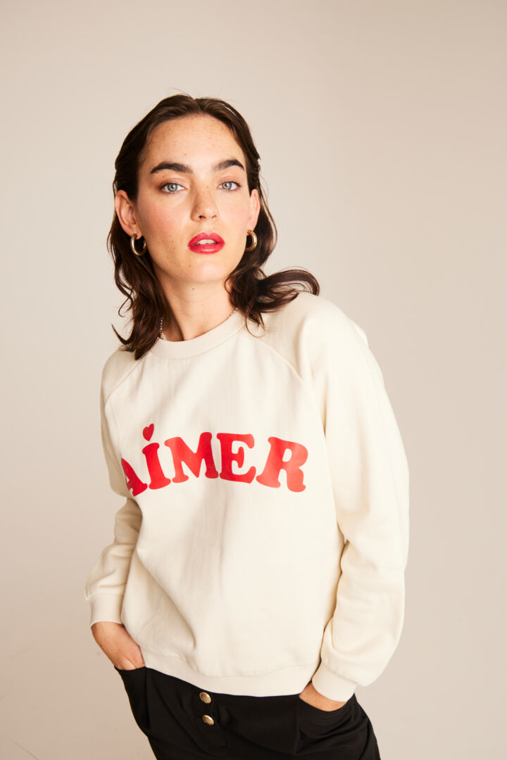 Aimer is a French word that translates to "to love." Cozy up in this fleece lined sweatshirt. Style it dressed up or down.