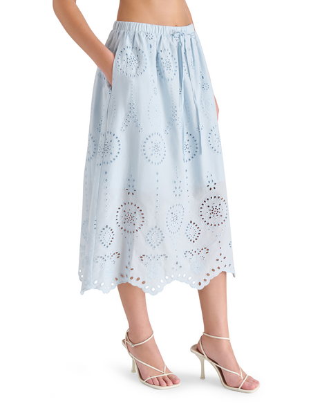 This Anaisa Skirt is perfect for any occasion. Its flowy midi length flatters your silhouette, while the eyelet detailing adds a touch of elegance. The matching top allows for effortless styling or pair back to a simple white tee. Elevate your wardrobe with this flowy and versatile skirt.