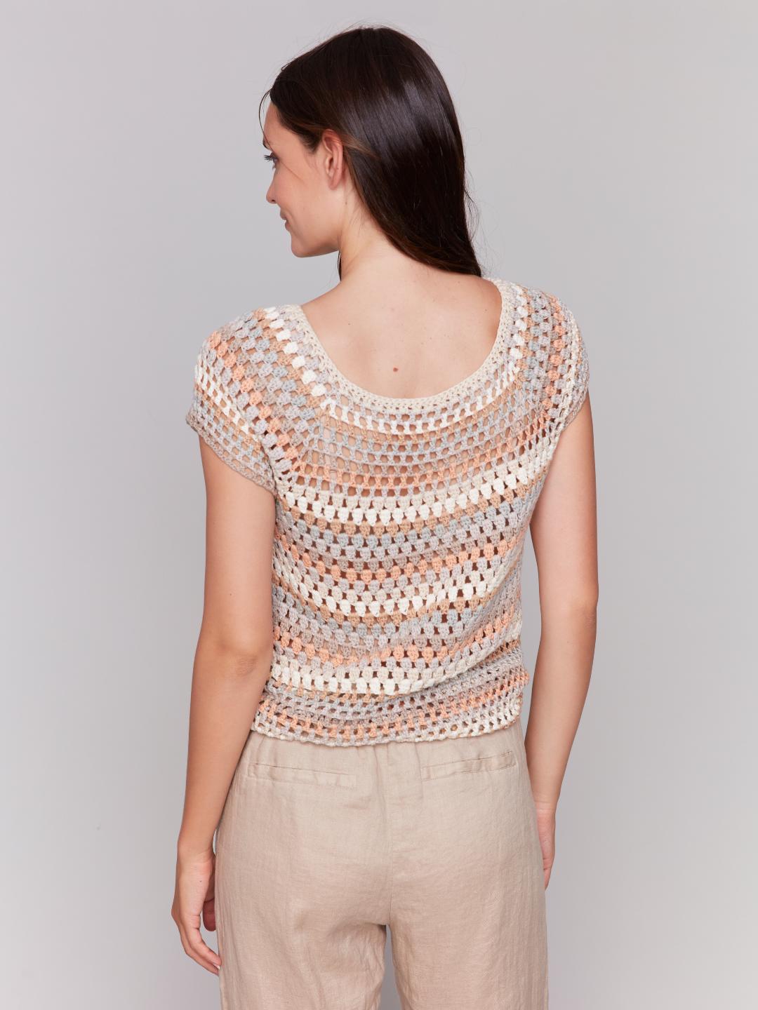 A gorgeous pairing of neutral pastels make up this unique crochet top. Layer it over one of our basic tees or tanks. Blends nicely with our Pork Chop Pants or style it with a pair of our white denim.