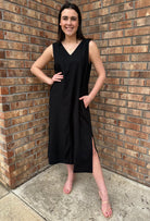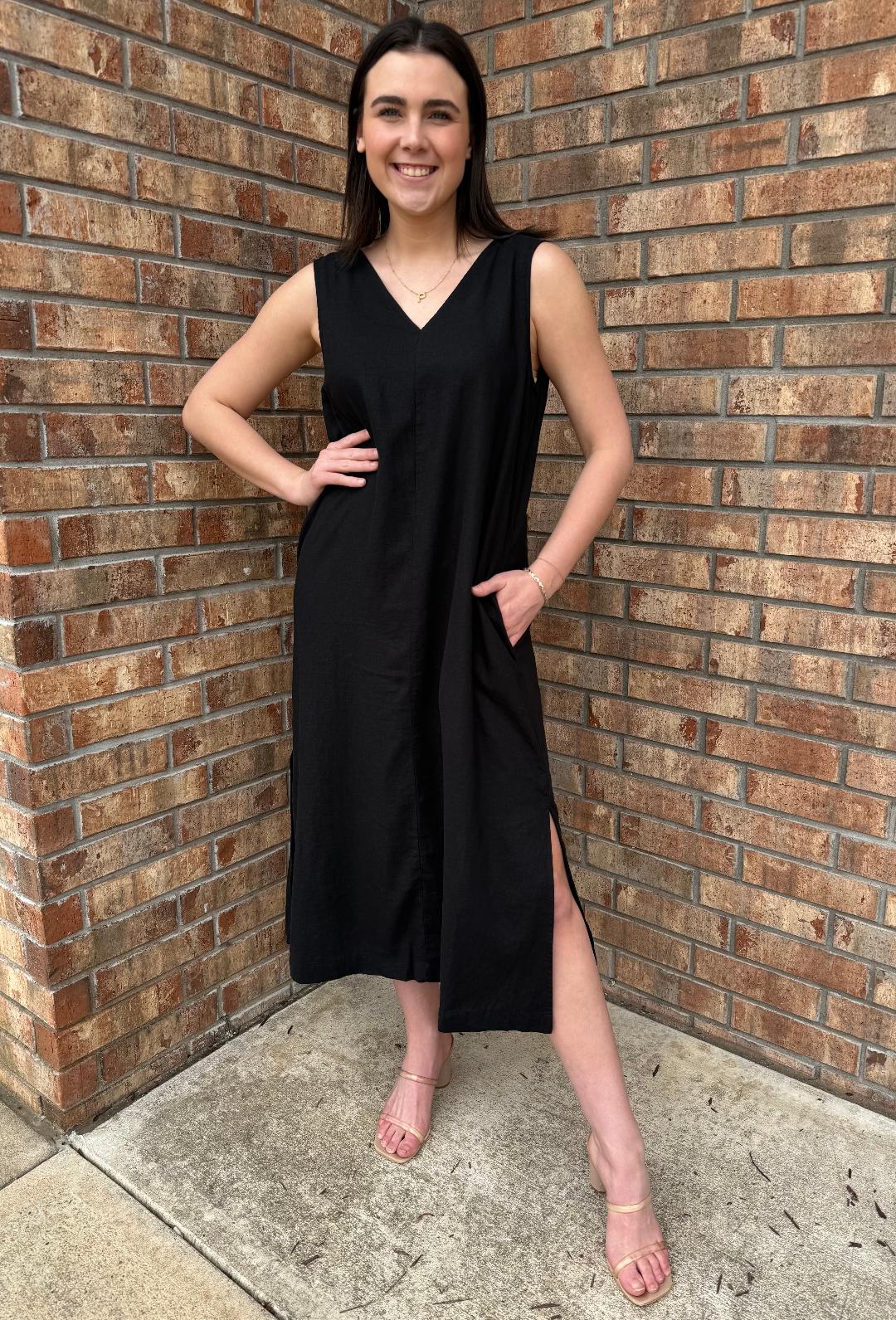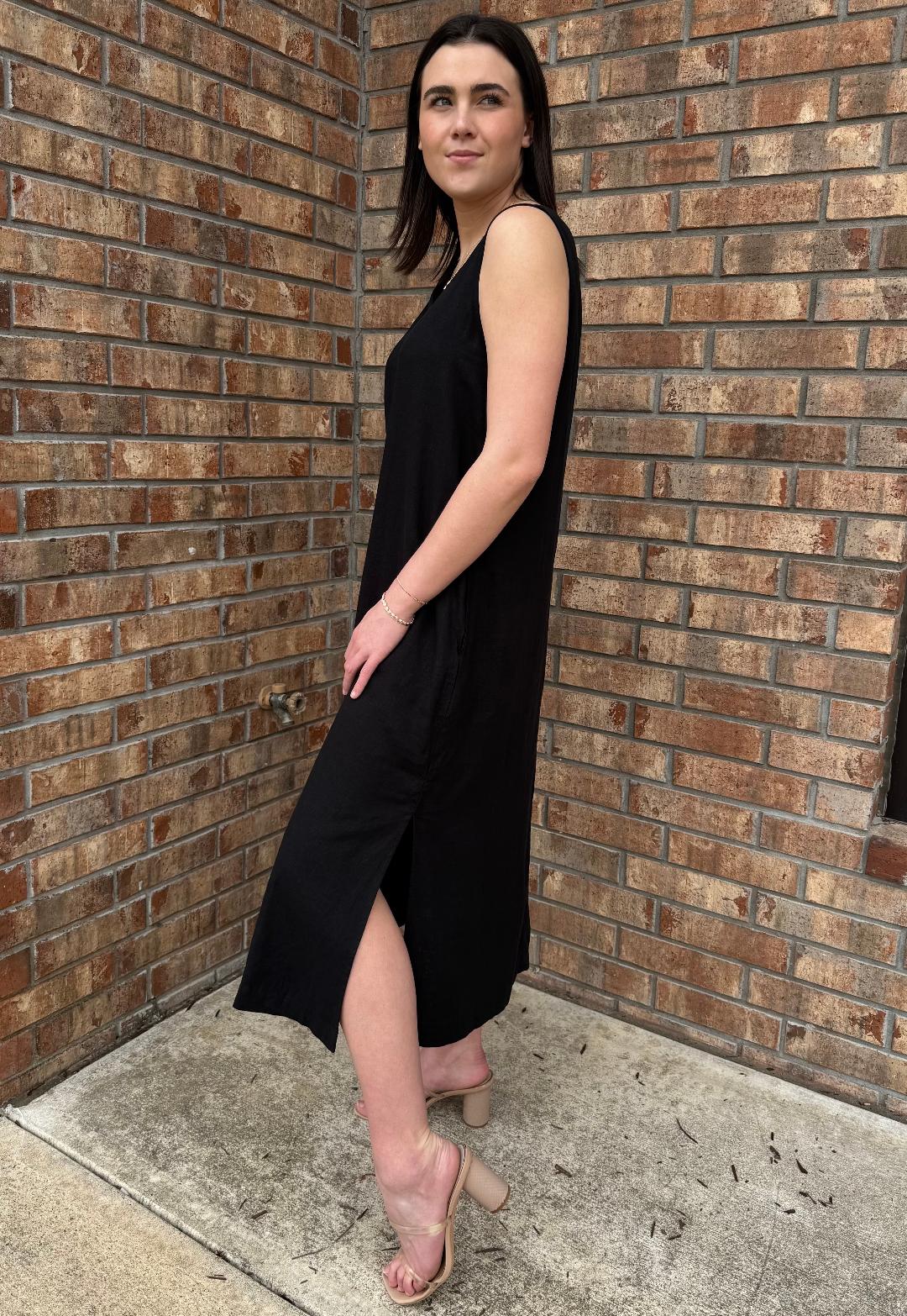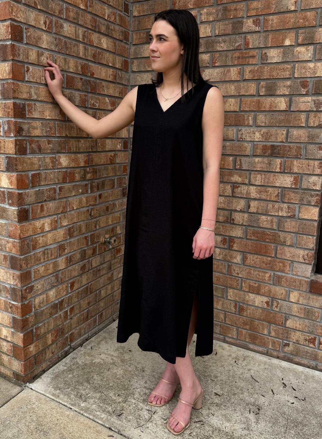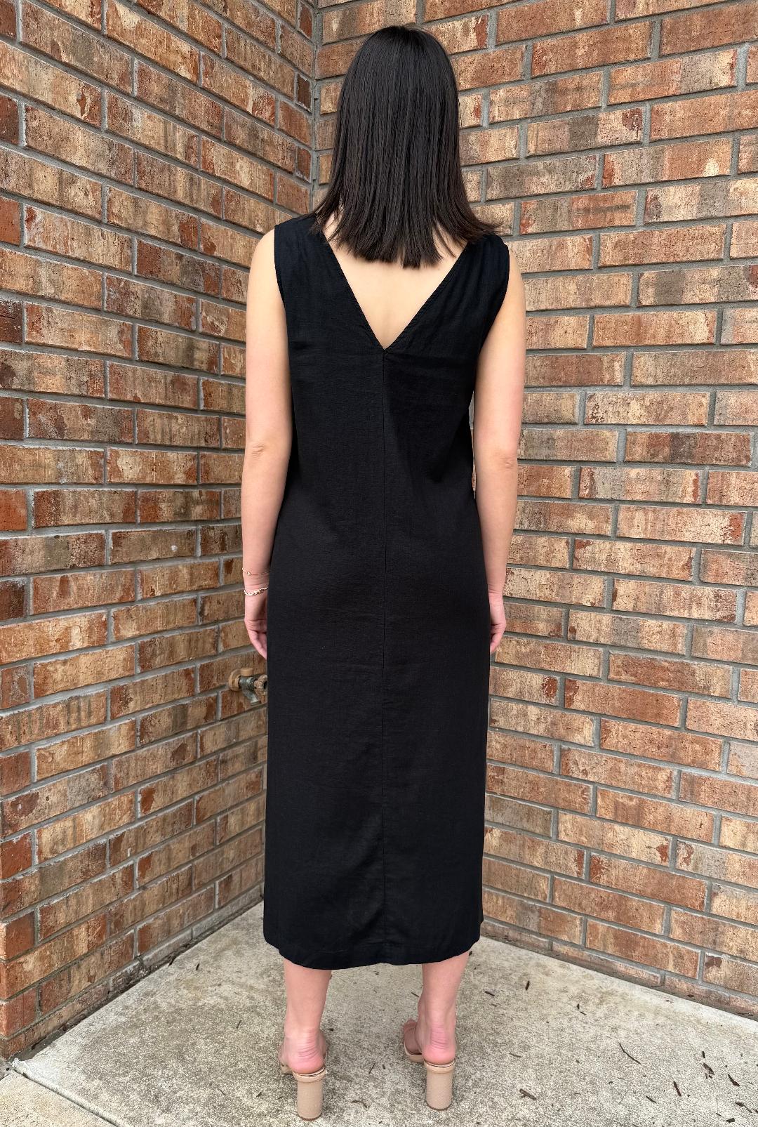 The name says it all. This linen/viscose black dress exudes ease and timeless elegance. A versatile silhouette you can dress down with casual sandals or sneakers or elevate with a wedge and jewelry - maybe even add one of our fun belts to cinch your waistline!