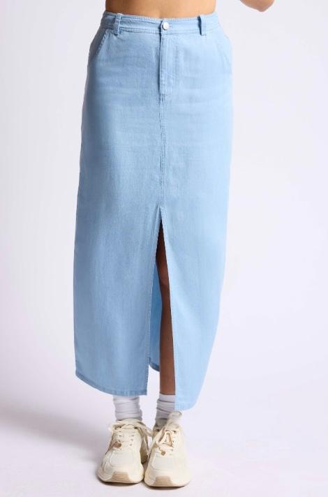 Super soft, light weight denim with fluidity and a nice drape. This denim skirt is made of breathable lyocell (tencel) so you can be cool and comfortable even in the heat of the summer. A versatile piece to style with a blouse or keep it simple with one of our Z Supply tees or tanks.