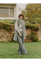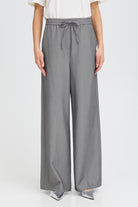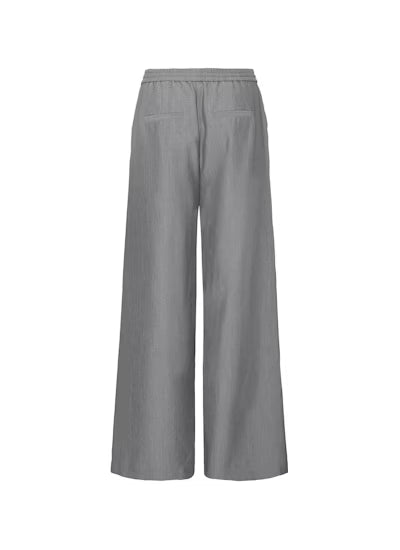 The Danta trouser is a modern wide-leg pant designed in a versatile soft gray tone. Tailored with a high-rise waist and clean front, it creates a polished and elongating silhouette. The wide leg flows with ease, giving the pants a refined drape that moves beautifully while maintaining structure. Side pockets add practicality without disrupting the sleek design, and subtle pleating at the waist adds just the right amount of detail. Sophisticated yet effortless, these trousers can be styled with a crisp blouse for work, paired with a fitted knit and sneakers for a chic daytime look, or dressed up with heels and a blazer for evening sophistication.