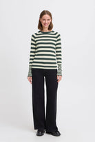 A timeless striped knit with a modern twist, the Green Gables Stripe Knit Top brings a fresh pop of pattern to your wardrobe. Featuring deep green and cream horizontal stripes, this fitted sweater has a classic crew neckline and long sleeves that transition into narrower stripes at the cuffs for a playful finish. Its soft knit fabric offers all-day comfort while maintaining a sleek silhouette, making it perfect for pairing with denim, wide-leg trousers, or layered under a blazer. A versatile piece that bridges casual and polished with ease.