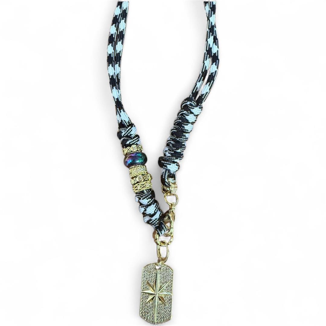 The Johnny Necklace features an 18k gold plated pendant exquisitely detailed with sparkling cubic zirconia stones, adding a refined touch of elegance. Suspended from an 18-inch fabric cord, this necklace offers a comfortable and lightweight wear, perfect for daily use or special occasions. Its durable plating ensures lasting shine and resistance to tarnish, making it a sophisticated accessory that complements both casual and formal styles with expert craftsmanship.