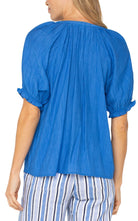 This versatile top showcases puff sleeves and is lightweight, making it perfect for any warm weather event. Pair it with denim, shorts or linen pants for a sophisticated ensemble.