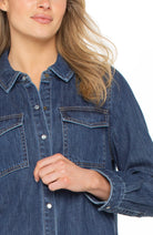 Finished with faux pearl buttons for a soft contrast, this denim button-down shirt brings a fresh perspective to a timeless silhouette. Easy to style and endlessly adaptable—wear it fully buttoned, half-tucked, or open over a tee for a look that’s relaxed but refined.