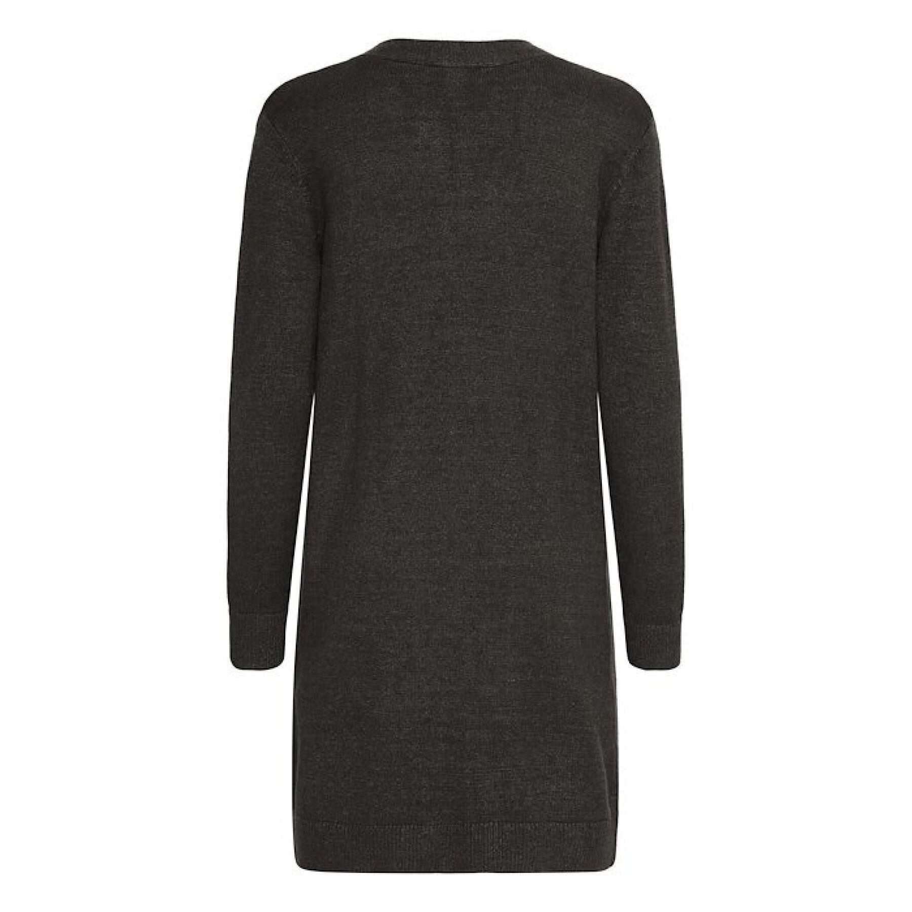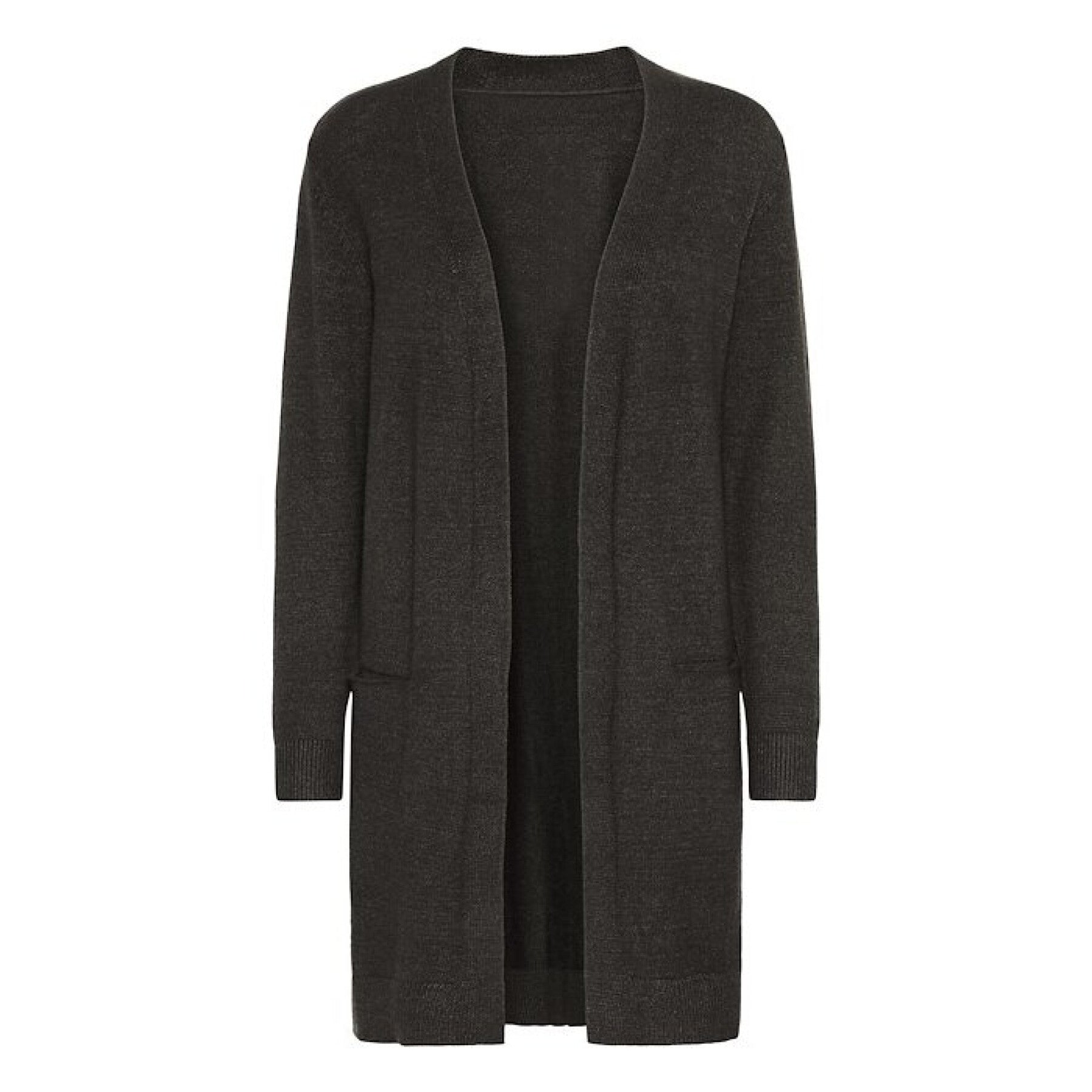This cardigan is a timeless layering essential designed in a soft, medium-weight knit. It features a longline silhouette with an open front, making it effortless to throw on over any outfit. The ribbed cuffs and hem add subtle structure, while the relaxed fit ensures comfort and versatility. Finished with practical side pockets, it’s perfect for both casual wear and polished layering. The deep charcoal shade gives it a modern, understated edge, making it an easy piece to style for workdays, weekends, or cozy evenings.