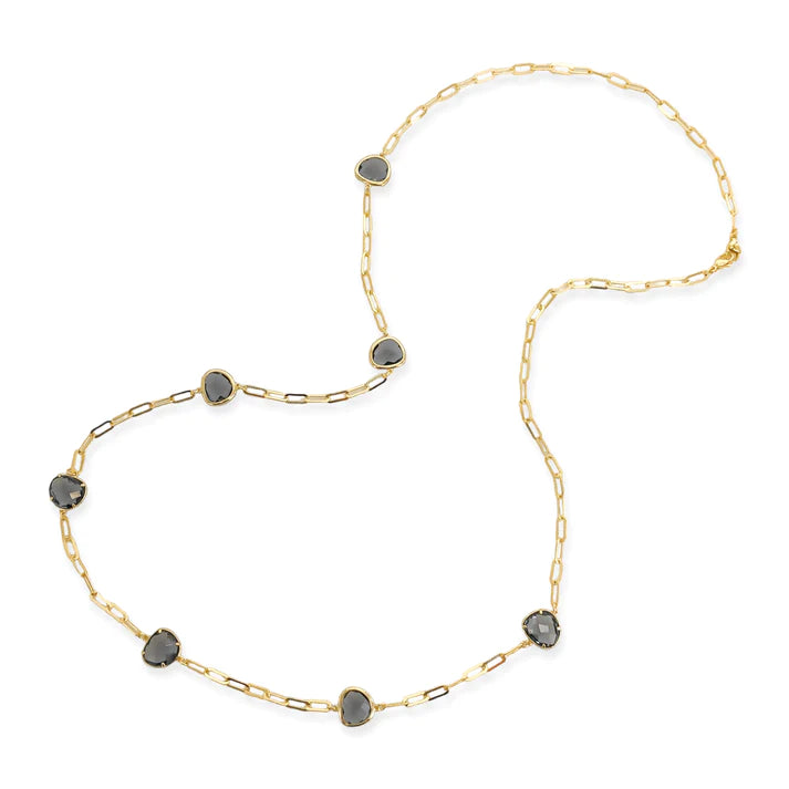 Experience the luxury of this necklace with its striking half textured paperclip chain artfully adorned with colorful gems. Boasting an exclusive and sophisticated look, it's the ultimate statement piece for the stylish and adventurous.