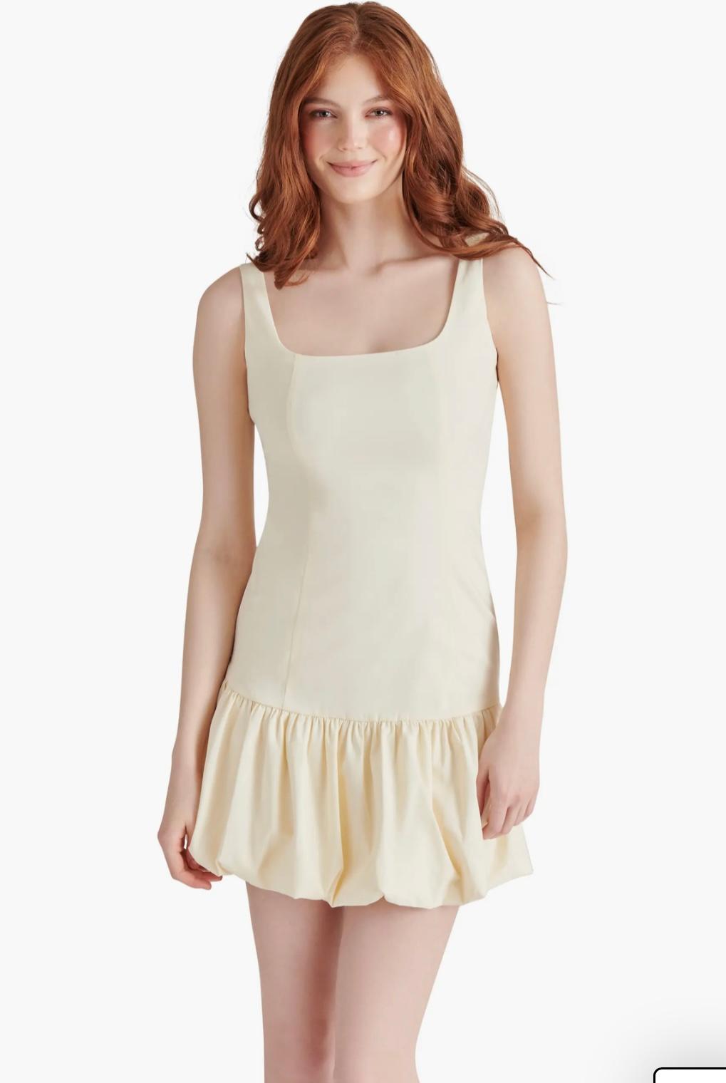 A fun, sassy little number with a bubbled drop-waist design. A great graduation option or for a bride-to-be. Who doesn't love a great white dress in the summer?!