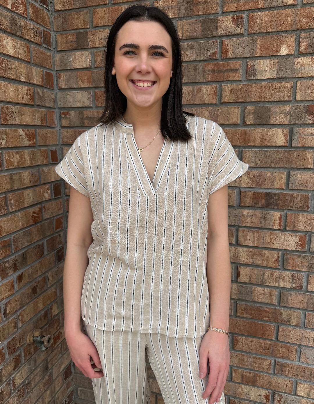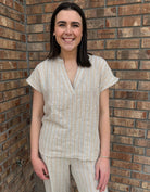 Sandstone Stripe V Neck Top