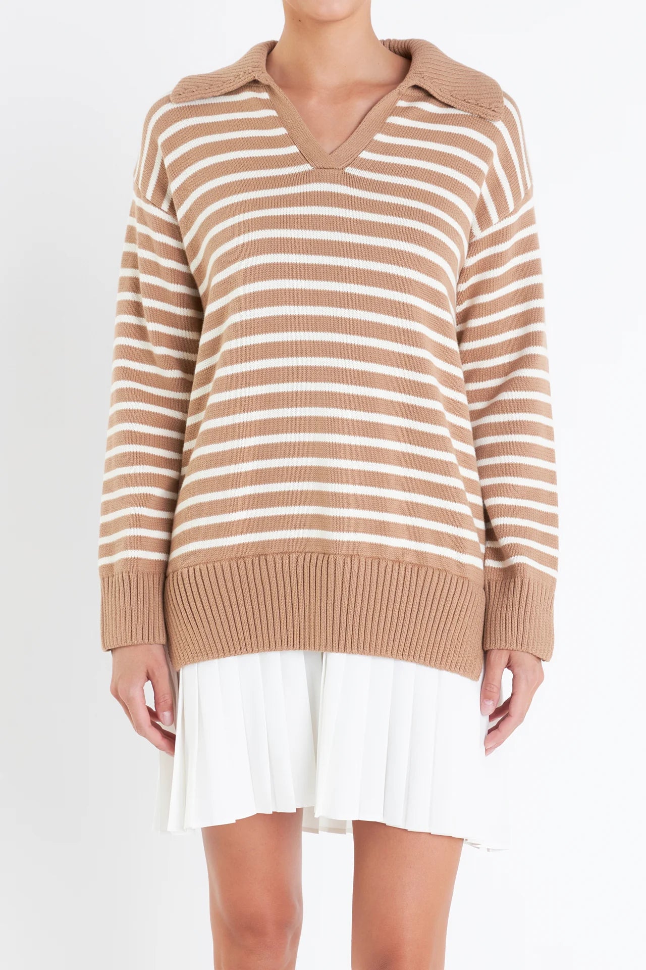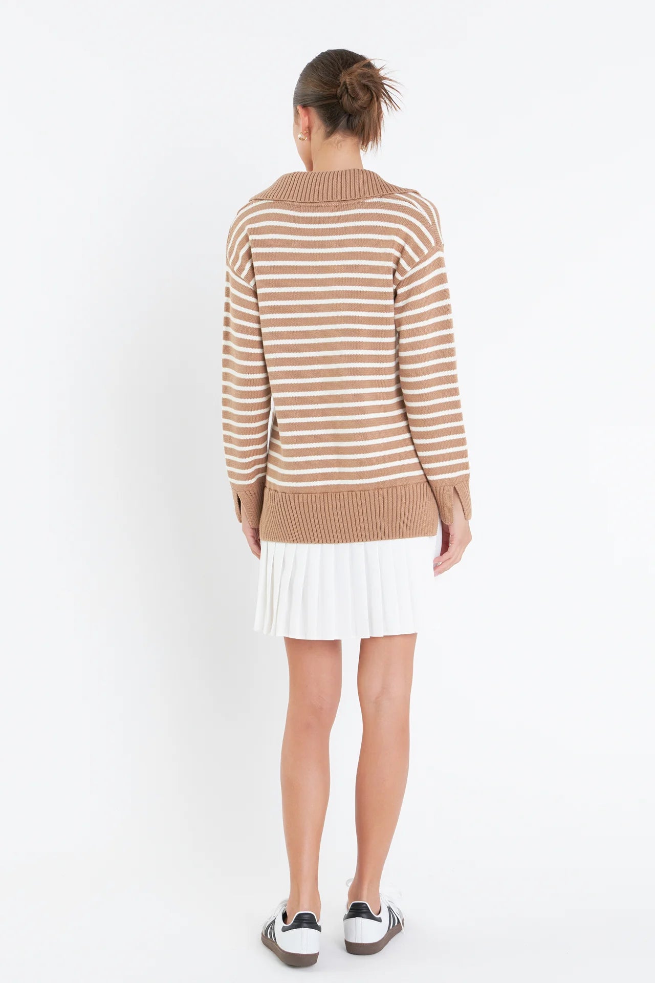Introducing the perfect piece for any occasion. Its relaxed fit make it both comfortable and stylish. The pleated skirt adds a touch of elegance while the collared V-neck adds a touch of sophistication. Made from the finest materials this dress will have you feeling confident and chic all day long. Make a statement with bold stripes and a unique design. Perfect for a night out with tall boots or a casual day look with sneakers.