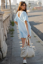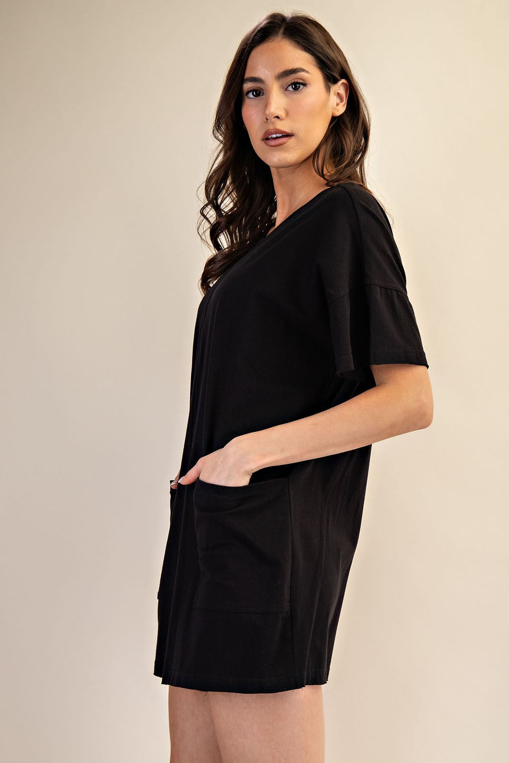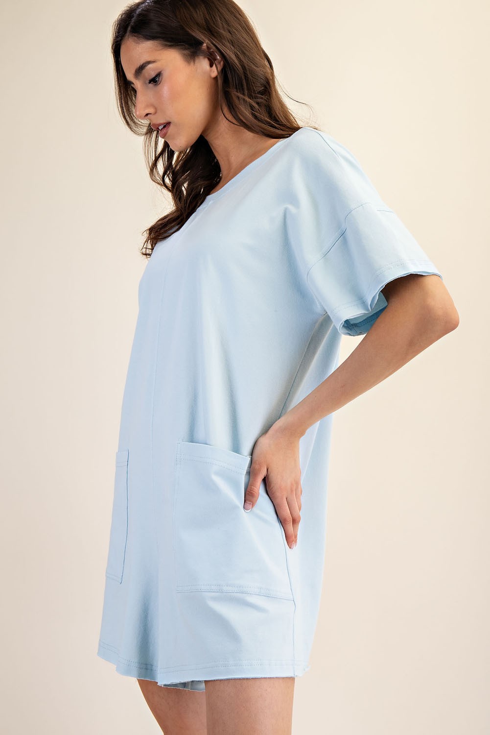 Crafted from a breathable and super stretchy fabric, this romper ensures unrestricted movement while keeping you cool all day long. Its reversible design offers versatility, allowing you to switch between a classic scoop neckline or a chic v-shaped back. Complete with charming patch pocket details and raw hemlines, this romper exudes effortless charm. Slip into unparalleled softness and comfort, your go-to outfit for sunny days ahead.
