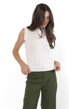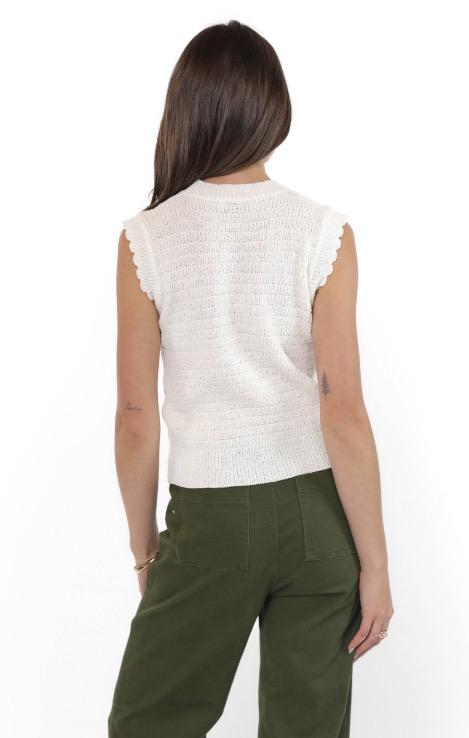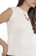 Chic meets cozy in the Sweet Stroll Sweater Tank by Sadie & Sage. This sleeveless knit top features a soft, textured stitch and a fitted silhouette that flatters without clinging. Scalloped edges at the armholes add a delicate, feminine touch, while the crew neckline keeps it classic. Lightweight and versatile, it’s perfect on its own for warmer days or layered under jackets as the seasons shift. A timeless staple with just enough charm.