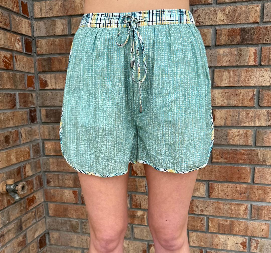 A unique mixed of plaid prints makes these shorts stand out. Comfortable with an elastic waistband, drawstring and pockets. An easy, flattering fit - great to wear back to solid tees or make it a set with the matching Dasmine Top.
